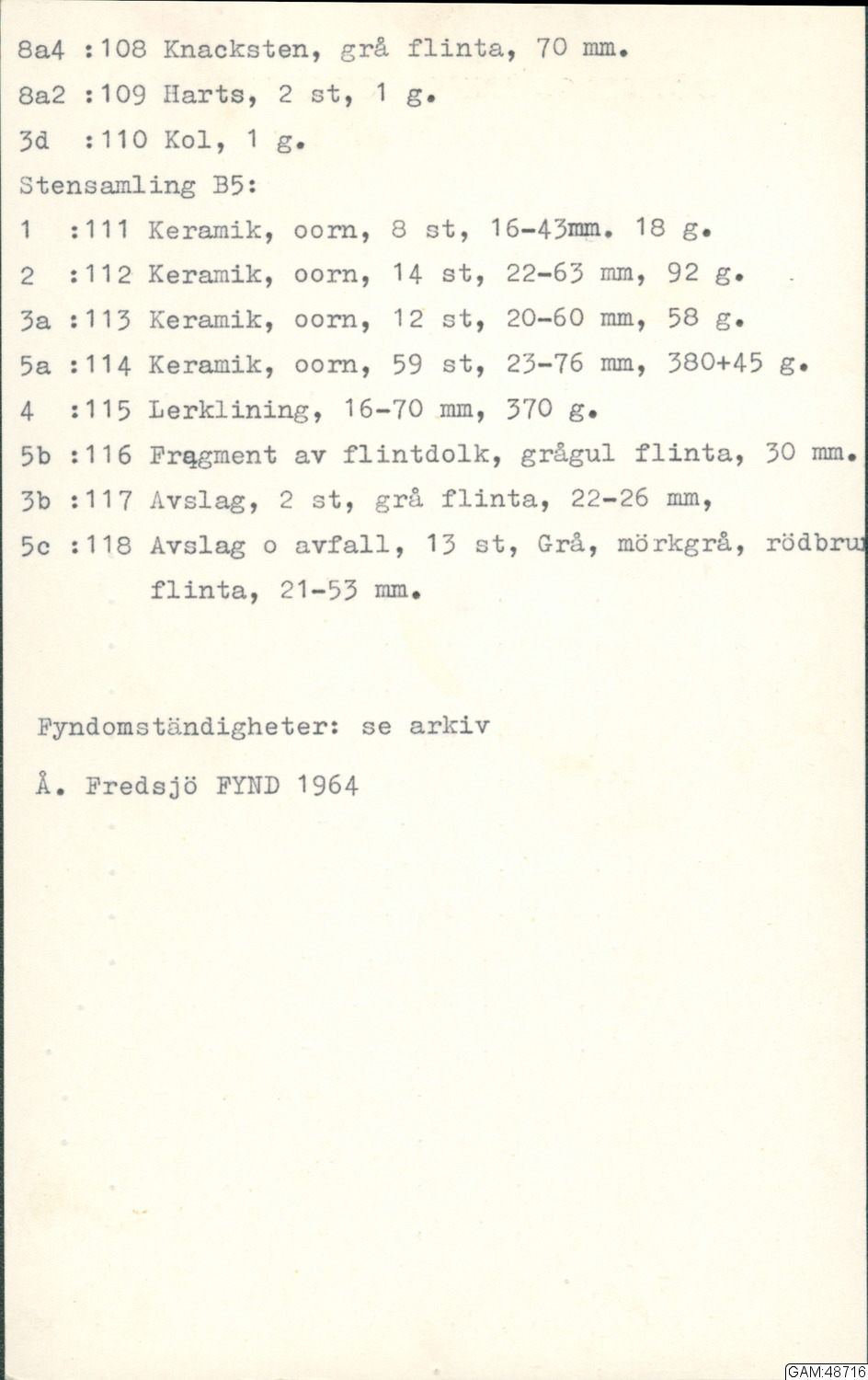 Fredsjö, Åke, Forngravar i Härlanda, Göteborg II Gravfält B i Fynd 1964 sid 41