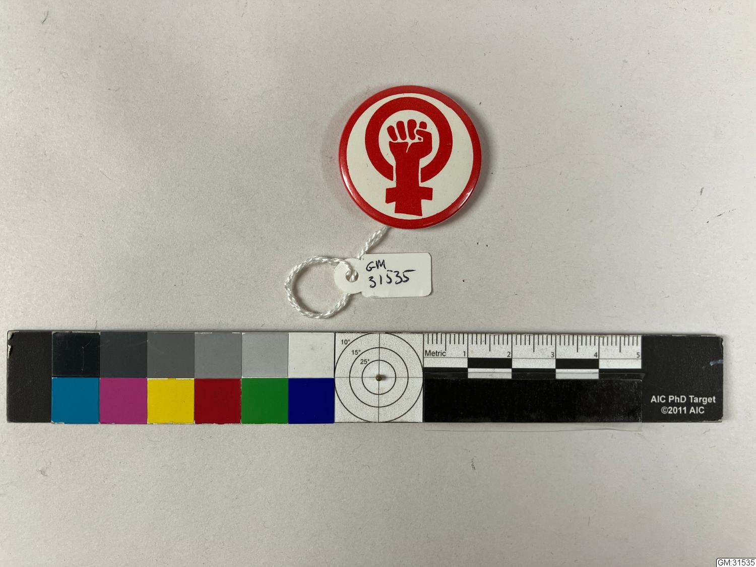 Ett runt rockmärke för "Grupp 8". Grupp 8 bildades 8maj 1968 och var mycket aktiva under 1970-talet för kvinnors rättigheter.