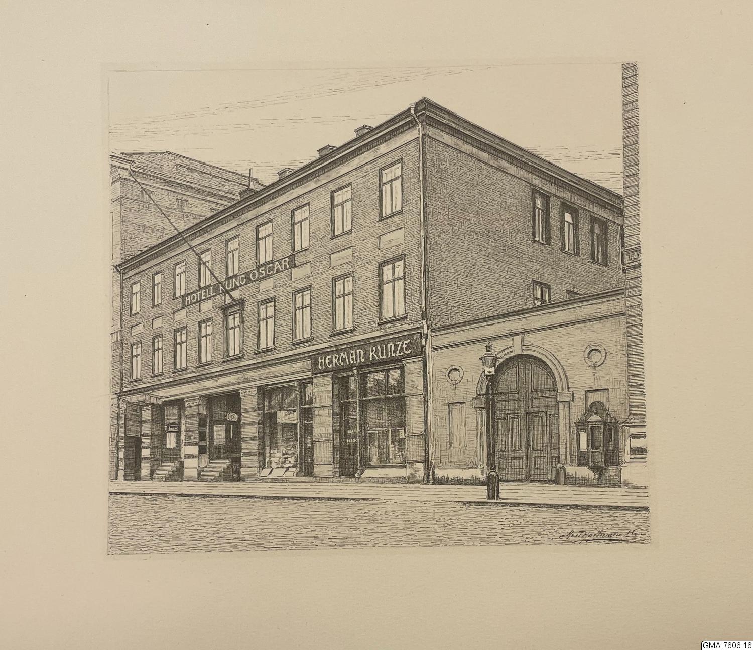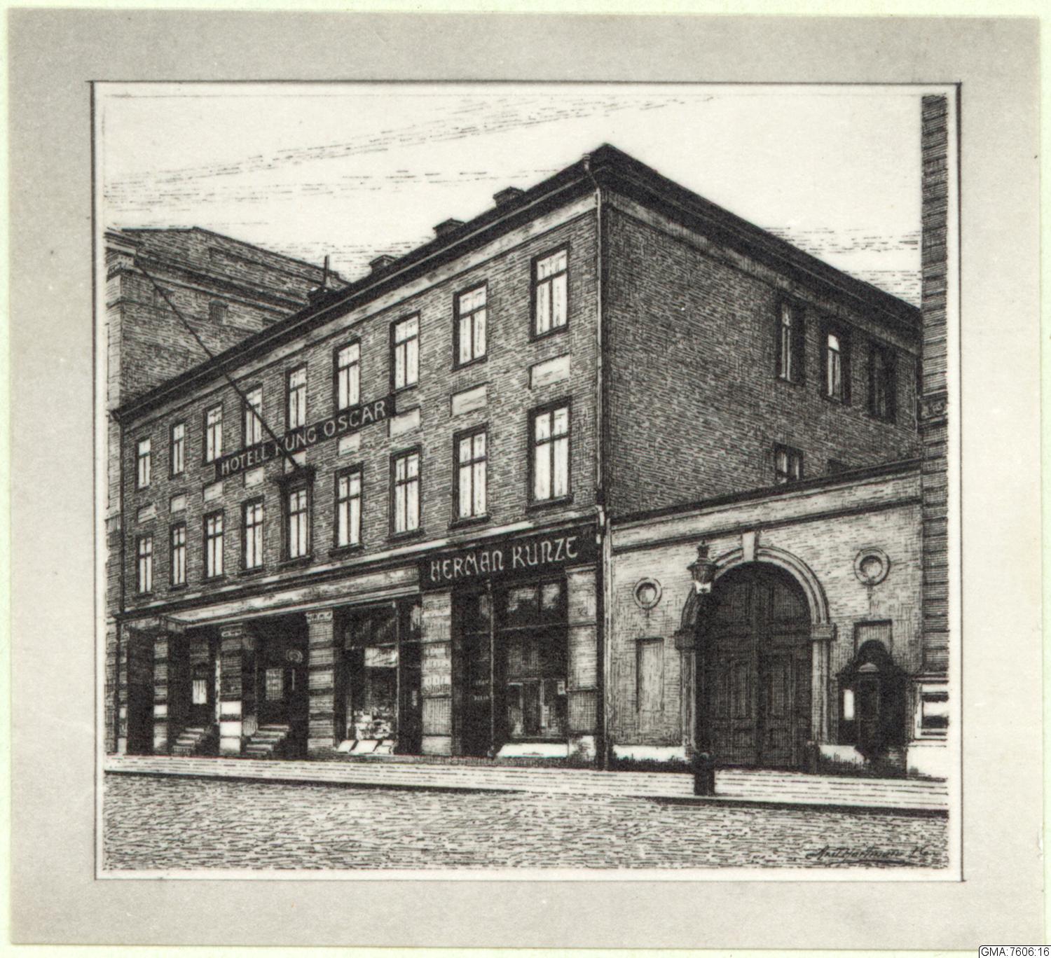 Hotel Kung Oscar på Södra Hamngatan 5, till vänster Wijska huset