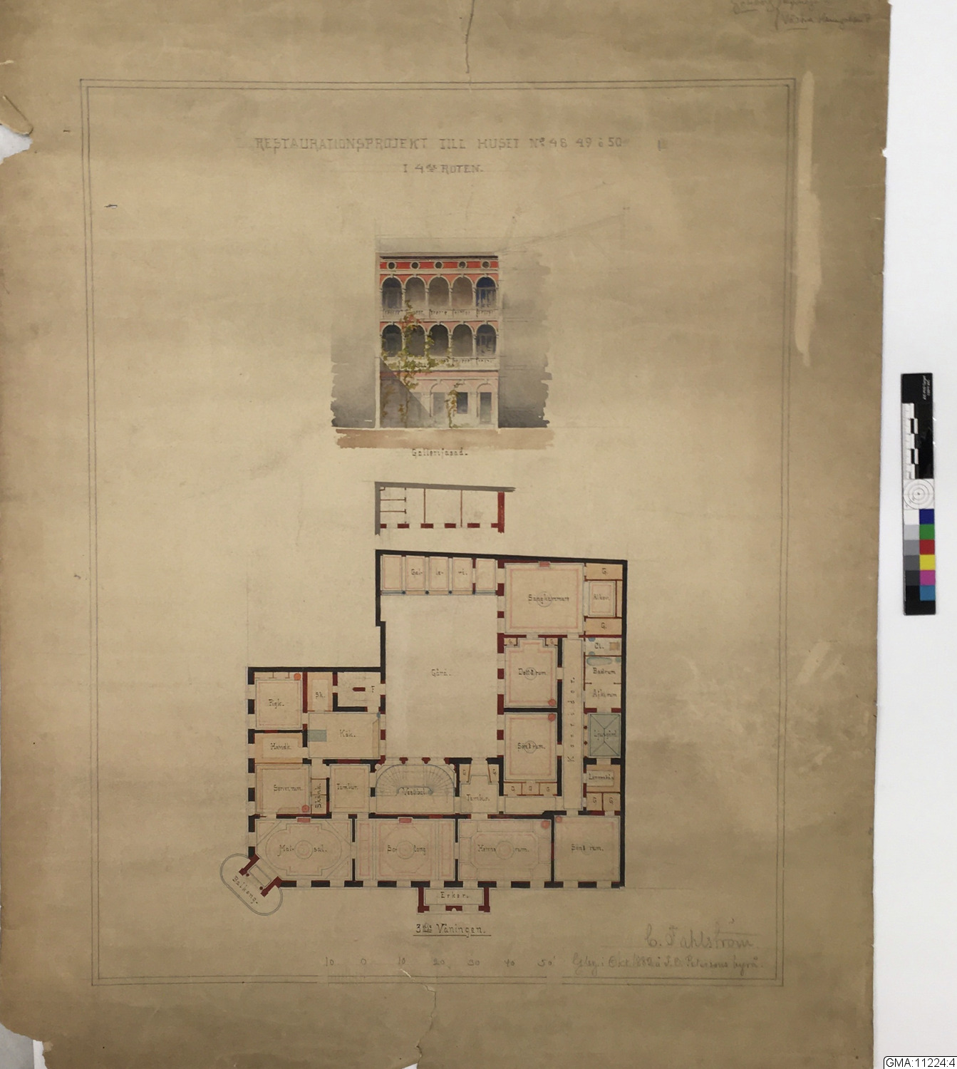 Ritning, 'Restaurationsprojekt till huset 48, 49 & 50' Västra Hamngatan