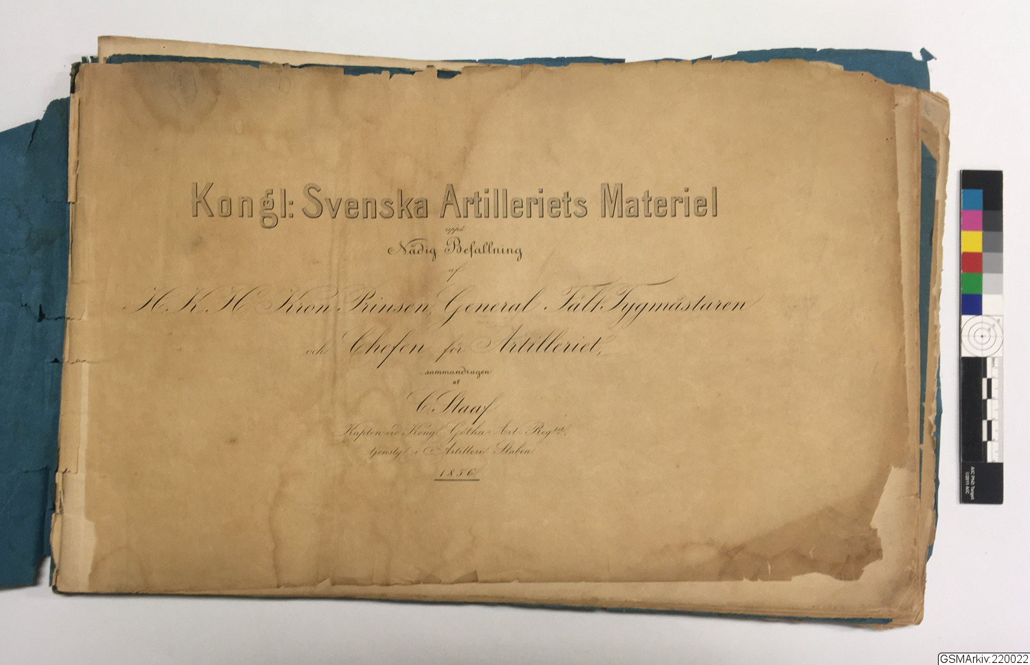 - Kongl: Svenska Artilleriets Materil uppå Nådig Befallning av HKH KronPrinsen, General FältTygmästaren och Chefen för Artilleriet sammandragen af C. Staaf Kapten vid Kongl. Götha Art: Reg:tet tjenstgl i Artelleri Staben 1856
