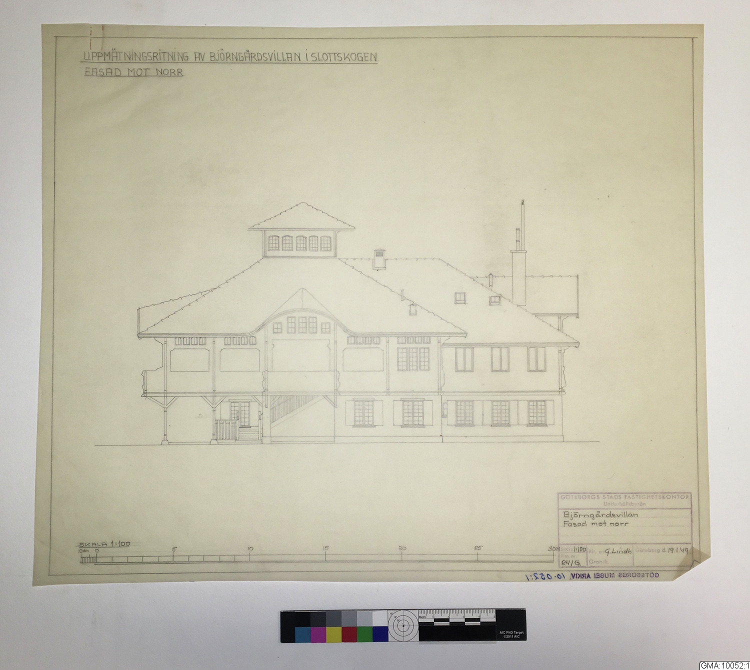 uppmätningsritningar av G. Lindh 19/1 1949 av Björngårdsvillan i Slottsskogen - Fasad mot norr