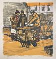 torg; torghandel; fiskförsäljning; man; kvinna; försäljare; kärra