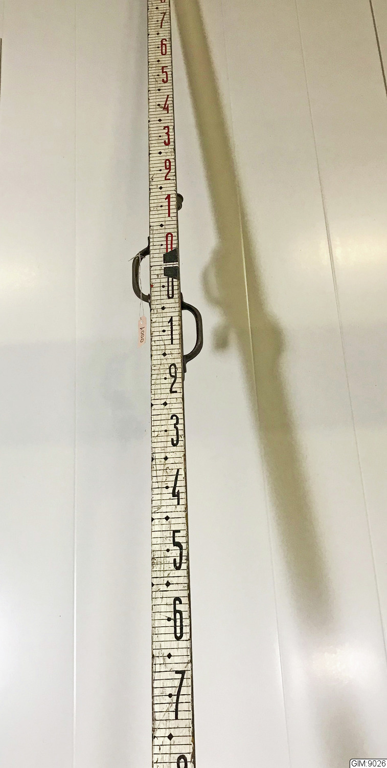 Använd vid mätning av höjdnivåer, förmodligen vid anläggningsarbeten av olika slag. Okänd givare, men kan möjligen ha använts av gatubolaget eller lantmäteriet. Ingick i ett accessions/deaccessionsprojekt med nr.0001.