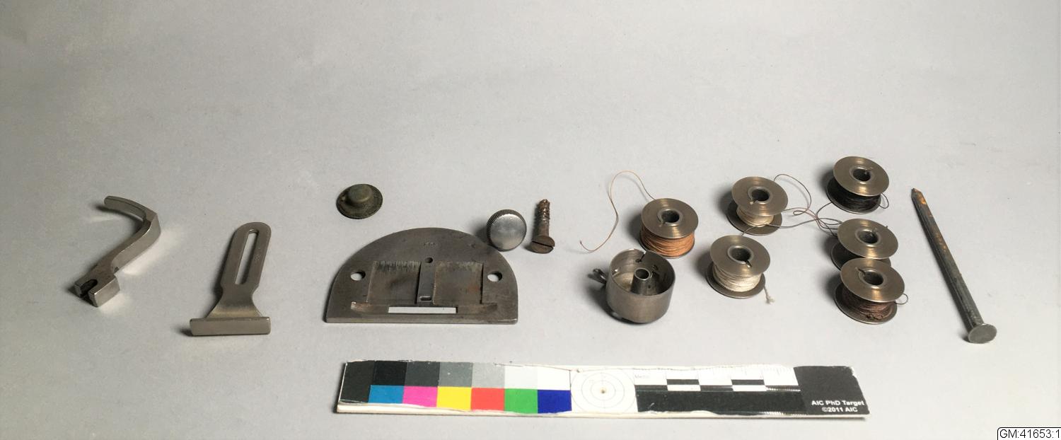 spolar, spik. metalldelar trol. extradelar till symaskin och låsbeslag återfunna i GM:41653