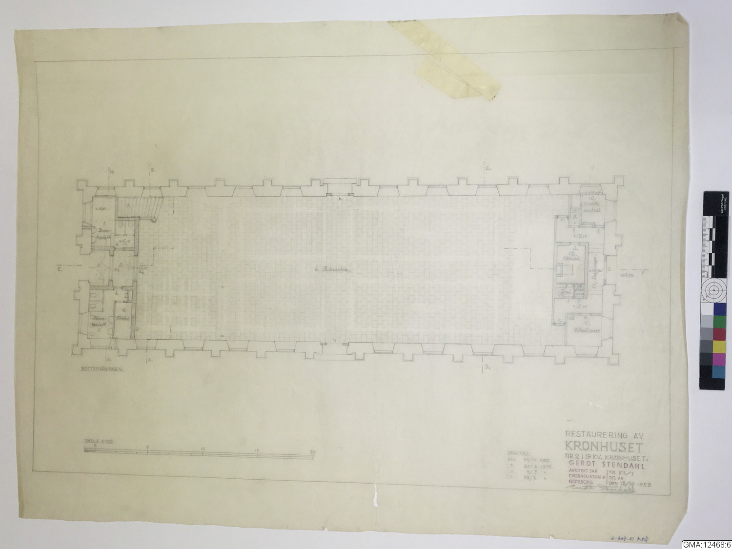 Uppmätningsritning till Kronhuset; Planritning av Arkitekt SAR Gerdt Stendahl, gjorde till den pågående ombyggnader av huset.