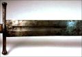 Bödelssvärd med texten "ME FECIT SOLINGEN", vilket betyder "Solingen har gjort mig". Solingen är en stad i Tyskland, känd för sin tillverkning av vapen. (GMM:1753) [Göteborgs födelse, 2017]