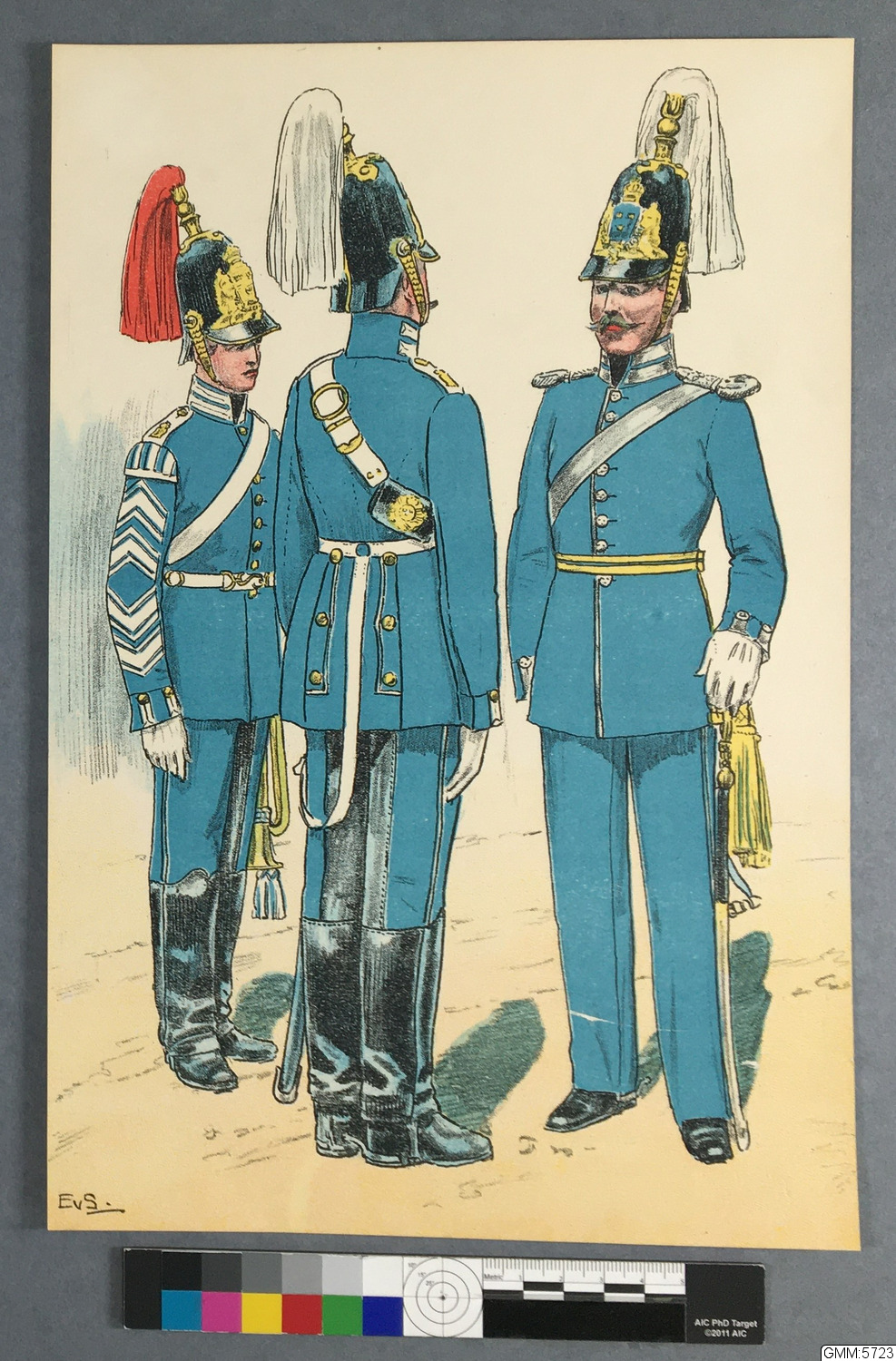1845-1852 Trumpetare, manskap och officer i stor parad. Livegardet till häst.