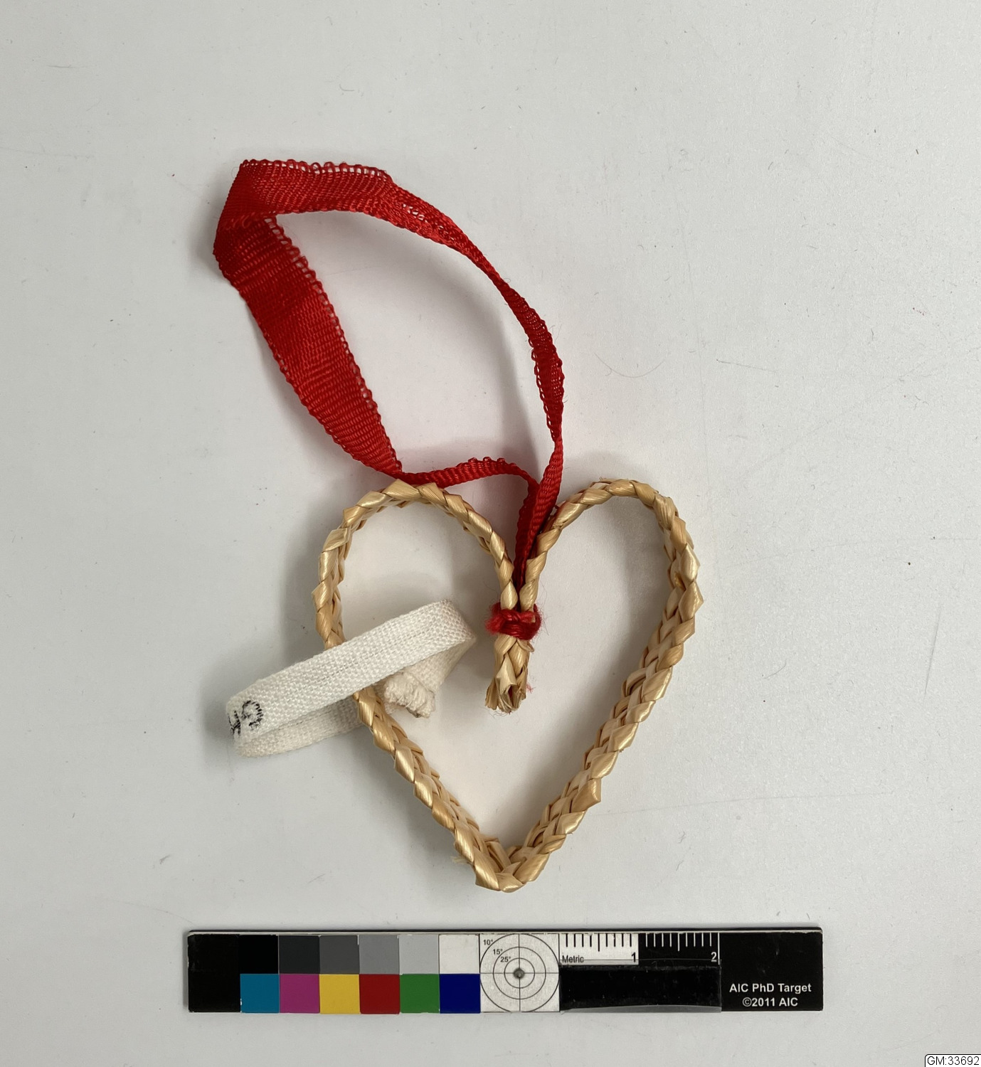 Hjärta av halm, julgransprydnad. Gåva från Lilly Wahlströms dödsbo 1976.