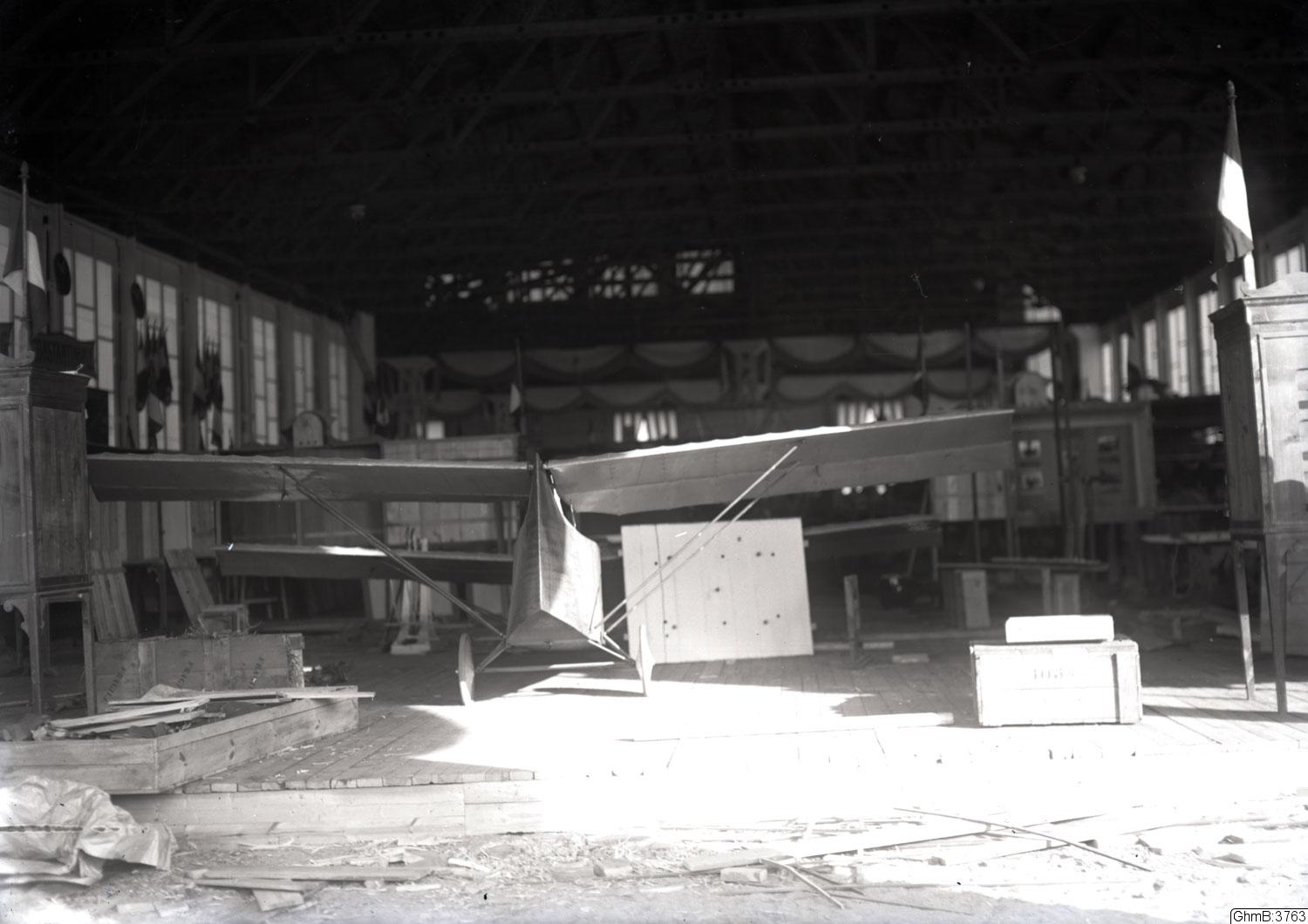 "Internationella luftfartsutställningen i Göteborg 1923, 20 juli-12 aug. Interiörer av stora hallen under pågående monteringsarbete"