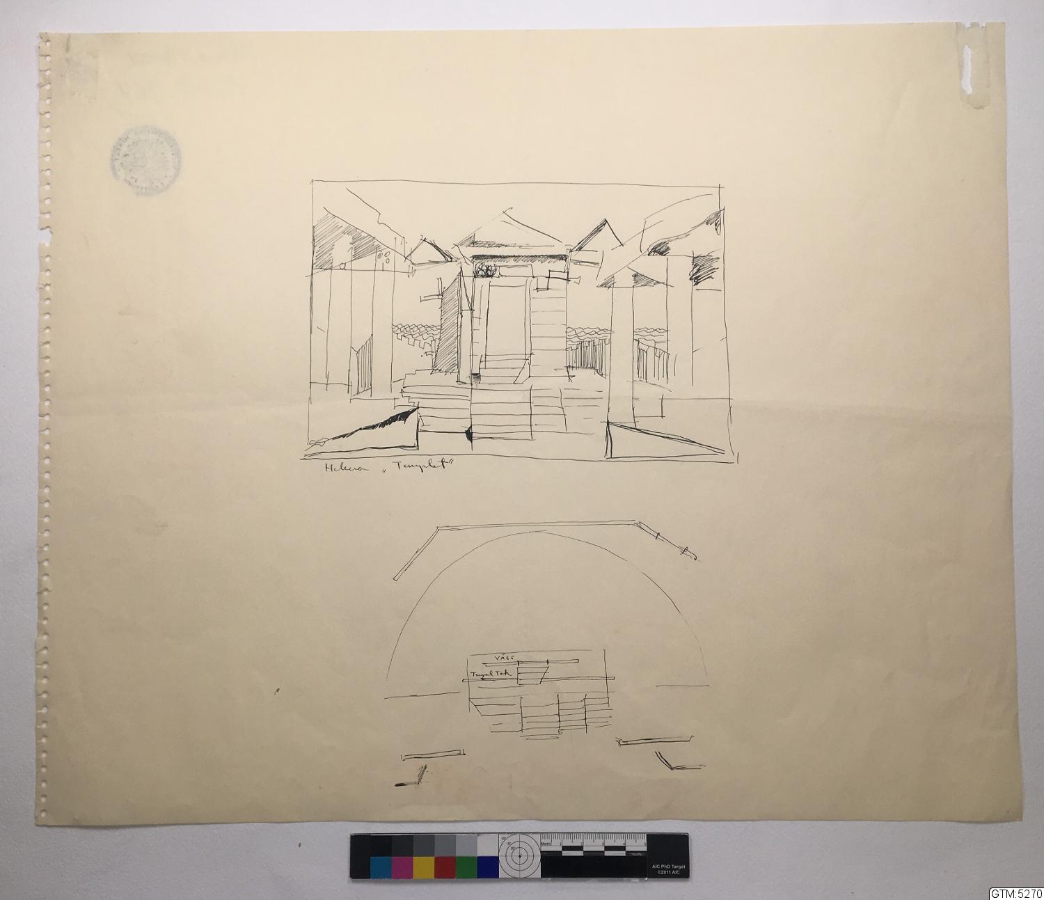 Skiss av Rolf Alexandersson till Sköna Helena på Stora Teatern, 1964.