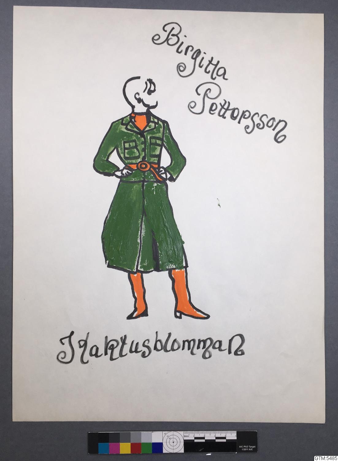 Kostymskiss till Birgitta Pettersson, i grön och orange.