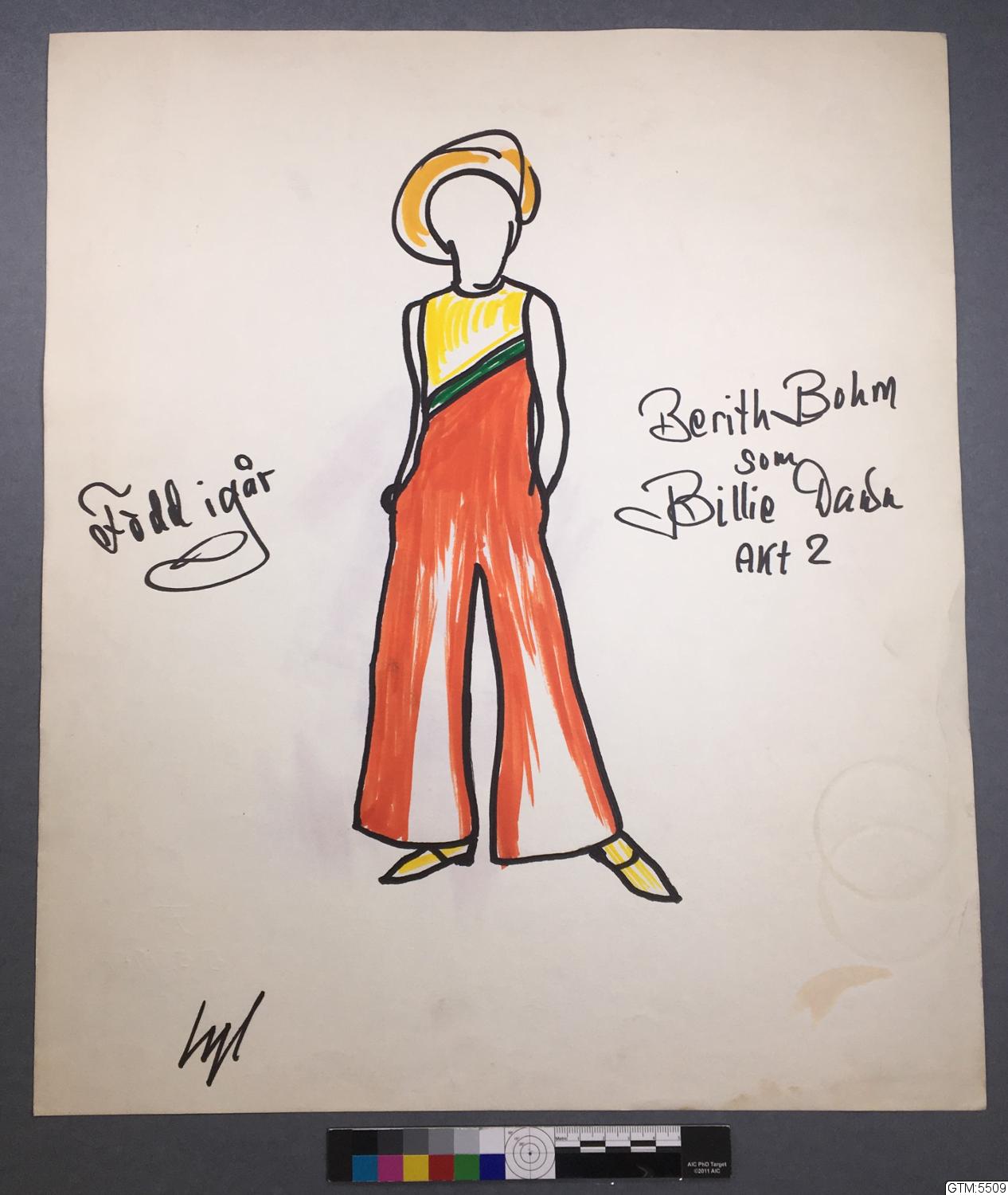 Kostymskiss till Berith Bohm som Billie Dawn, i orange byxor