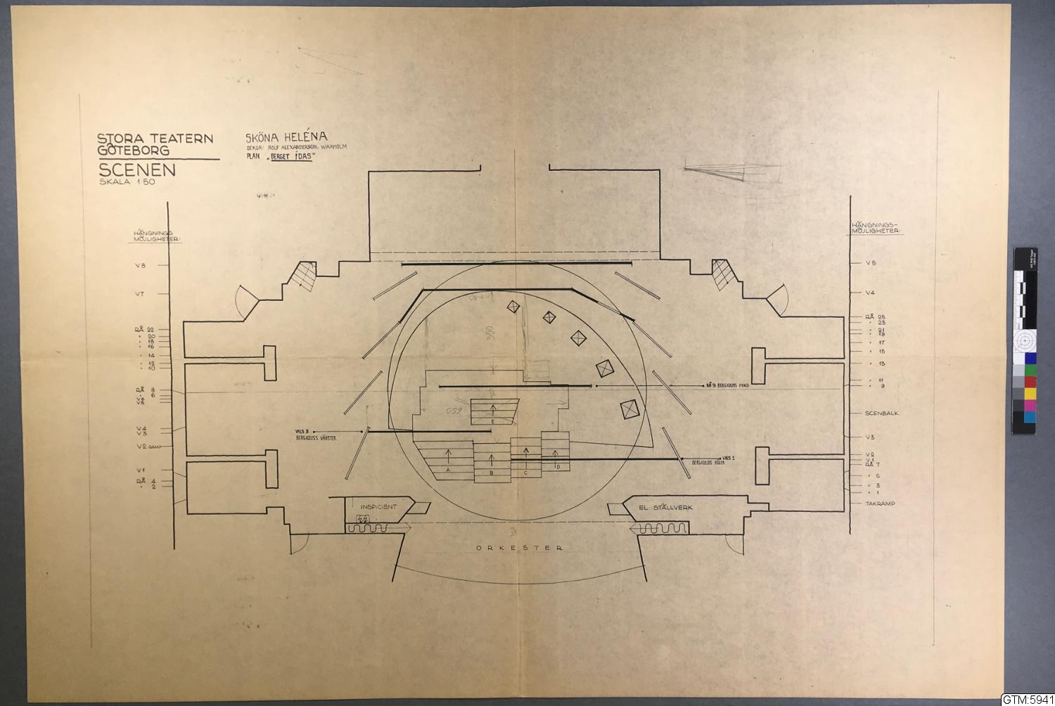 Uppmättningsritning till Stora Teatern, 'Sköna Helena' 1964