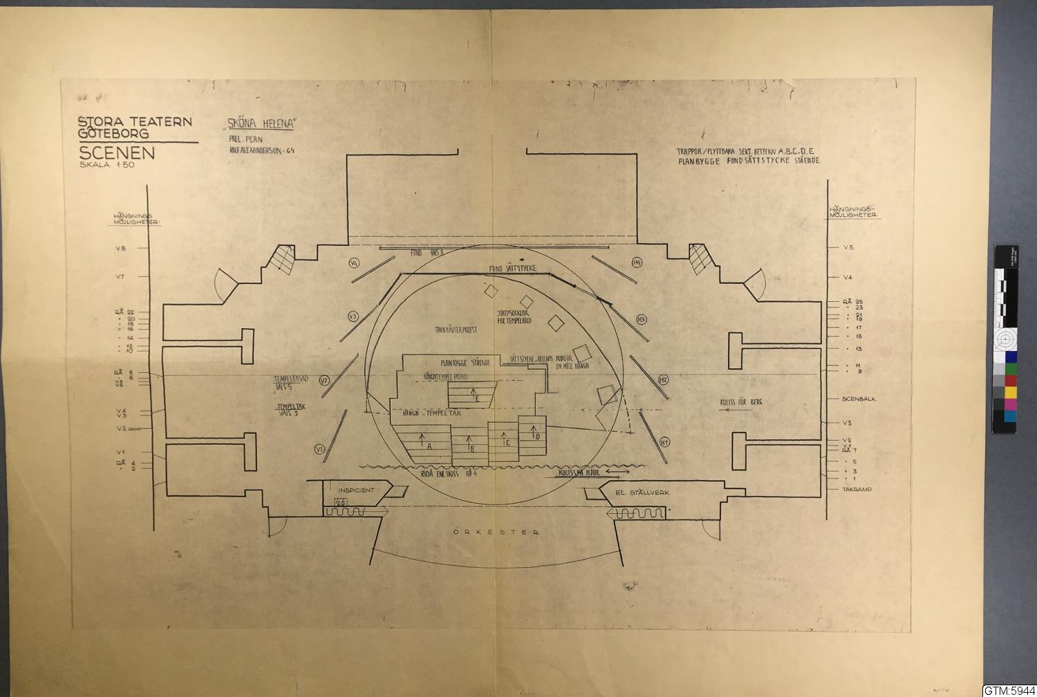 Uppmättningsritning till Stora Teatern, 'Sköna Helena' 1964