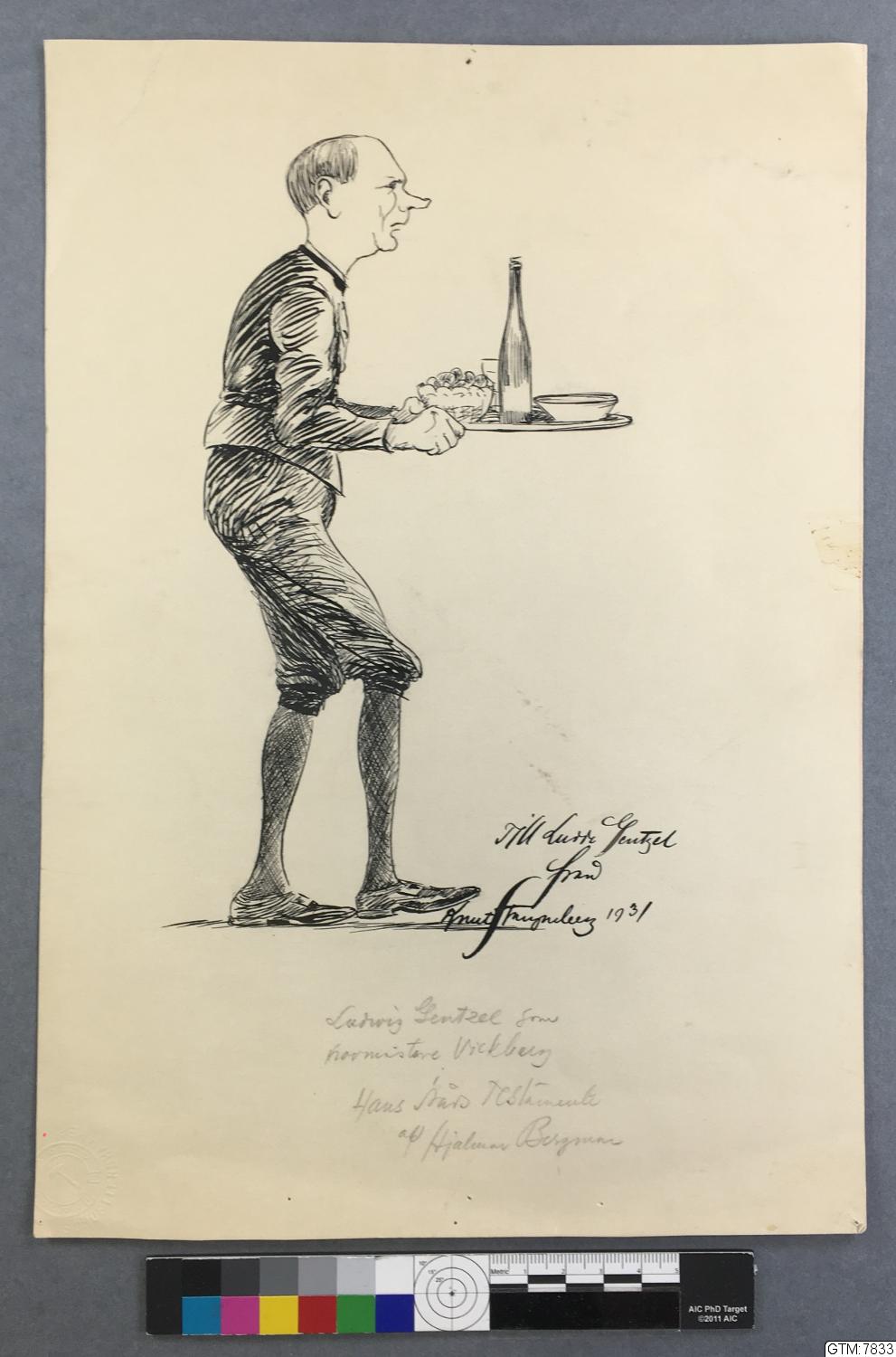 Skiss föreställer Ludde Gentzel, av Knut Stangenberg.