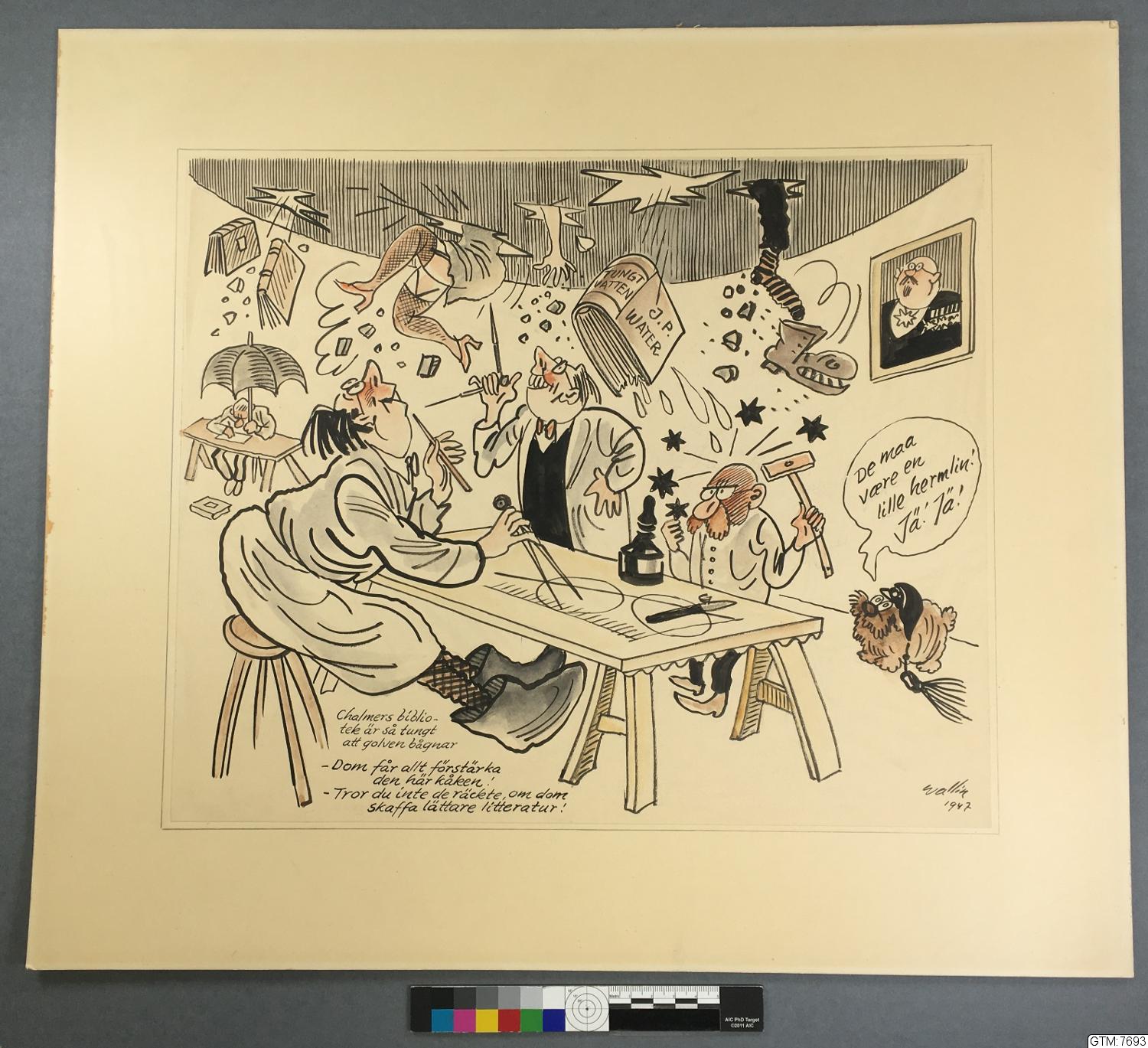 Användare av databasen varnas för att vissa poster kan innehålla bilder eller språk och termer som skildrar människor på ett sätt som kan uppfattas som stötande. En del objekt i samlingen kan också upplevas som obehagliga eller stötande.Vi är medvetna om att tillgängliggörandet är problematiskt. Vi har valt att inkludera denna historiska information eftersom den är en del av samlingarnas historia.