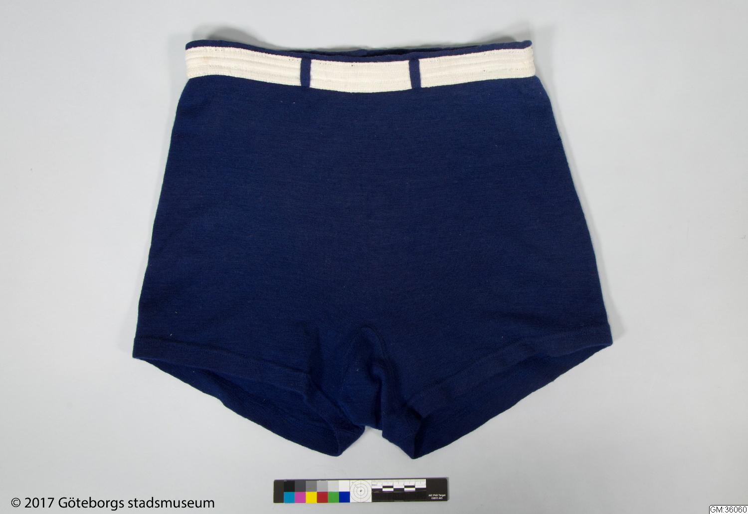 Badbyxor i ylletrikå som tillhört Gustav Ljungberg. Tillverkade under 1940-talet. Skänkta till museet av Gurli Ljungerg 1977.