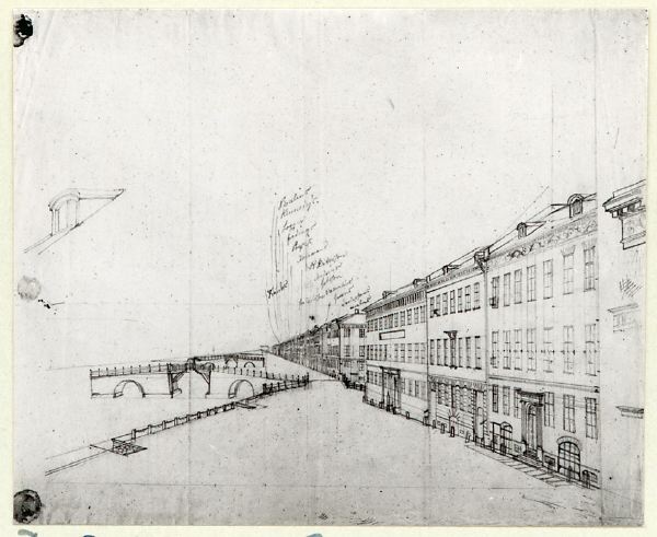 Blyertsteckningar av Johan Leonard Björkfeldt. Detaljstudier. Norra Hamnkanalen m.m.