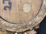 Ram med bemålade ornament. Detaljer i pastellage. Två ljuspipor.