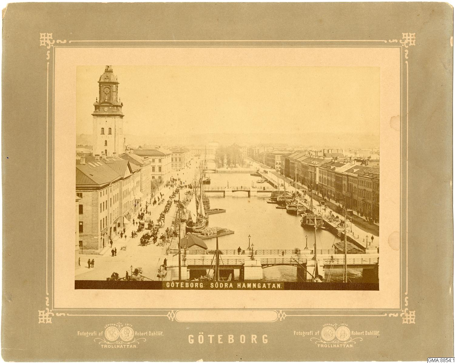 Stora Hamnkanalen samt Norra och Södra Hamngatan mot öster. Bilden tagen från Wijkska huset vid Lilla torget.