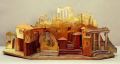 Modellen har en rostbrun grundton med sydländska hus och fasader med pelargångar och balkonger, däremellan prång, trappor och avsatser, en del med valvbågar och portaler, fonden är Akropolisliknande i ljuslila nyanser med fasader och hustak nedanför.