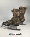 - Skridskor av svart skinn. Hög känga med 12 par hål och 6 hakar. Insida klädd med rött ylletyg. Stålmedar fastskruvade i kängan. Tillverkarstämpel på skenans framkant "R. Schillström & Son".