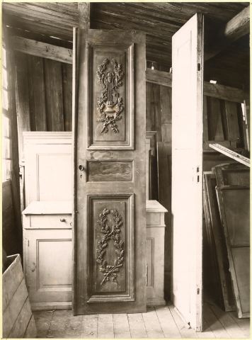 - Baeckström påskr. m. blyerts å baks. av fotot: Från Smiths hus, S. Hamngatan 17. Jfr dörr hos stadsfullm. Lamm; Malmskillnadsg. Sthlm. / Efter Sthlms slott! Sv. Kun 1916:S.194" Funnen på arkitekt Krügers materialgård, Göteborg.