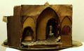 Scenmodell med tittskåpslåda och löstagbar vridscenmodell. _bild_a: hela scenmodellen med scenbild som på _bild_c. Vridscenmodellen har fyra scenbilder