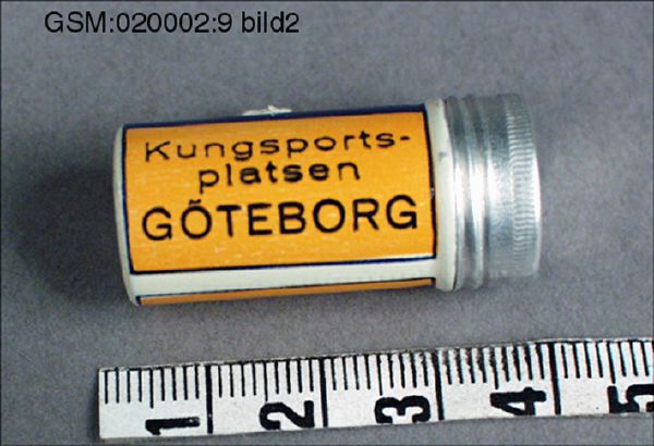 - nervlugnande; liten metalltub med skruvlock fylld med tabletter. Har ursprungligen förvarats i därför avsedd pappkartong, GSM:020002: