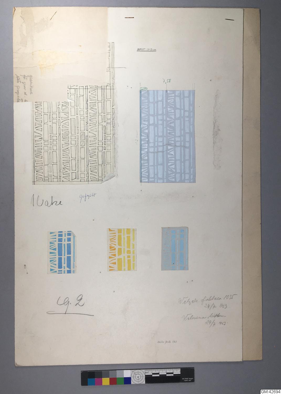 Förslag till tapet. handmålat. Signerad Cecilia Grate och daterad 1963.