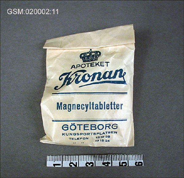 Apoteket Kronan, Magnecyltabletter, Göteborg, Kungsportsplatsen, telefon 13 15 38, 13 15 24