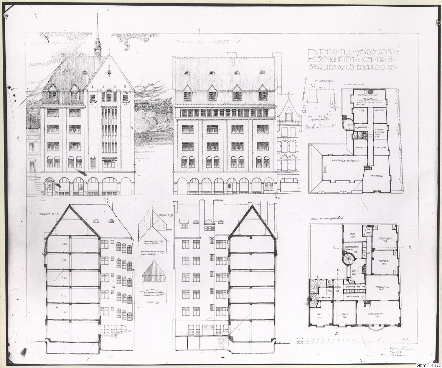 Ritning till nybyggnad för fastigheten å tomt nr 75 i 5te roten av Göteborgs Stad