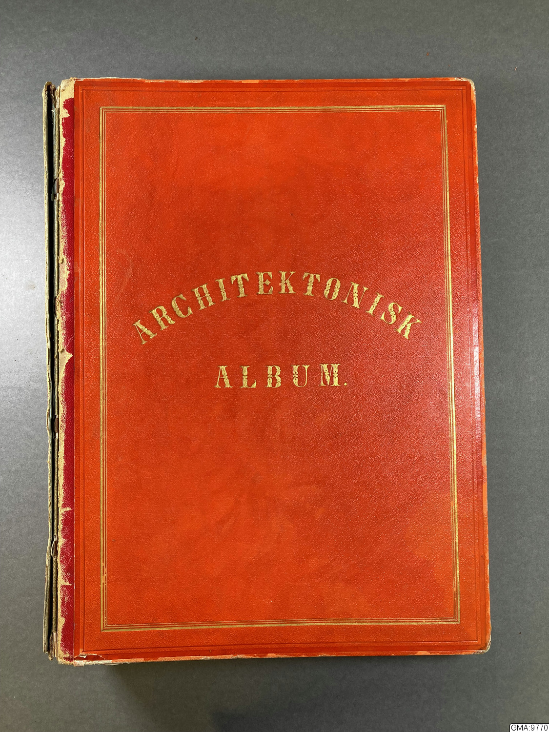 "Architektoniskt album" (pärmtitel). Fol. Halvfranskt band. Skadad rygg. Inneh. 110 blad, varav 44 sign. Inneh. 16 akvareller av byggnader i Göteborg, samt ca 94 akvarellerade planritningar och litografier, tusch- och blyertsteckningar.