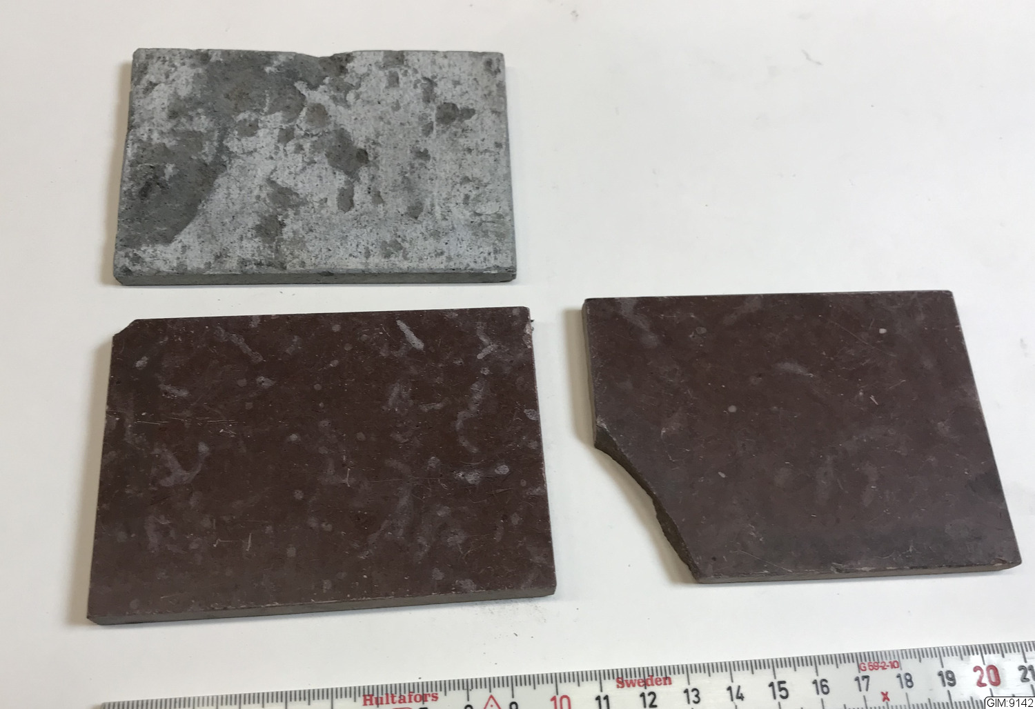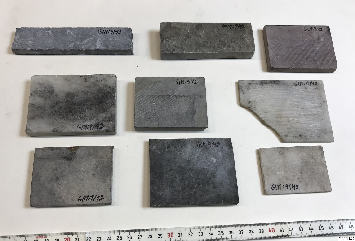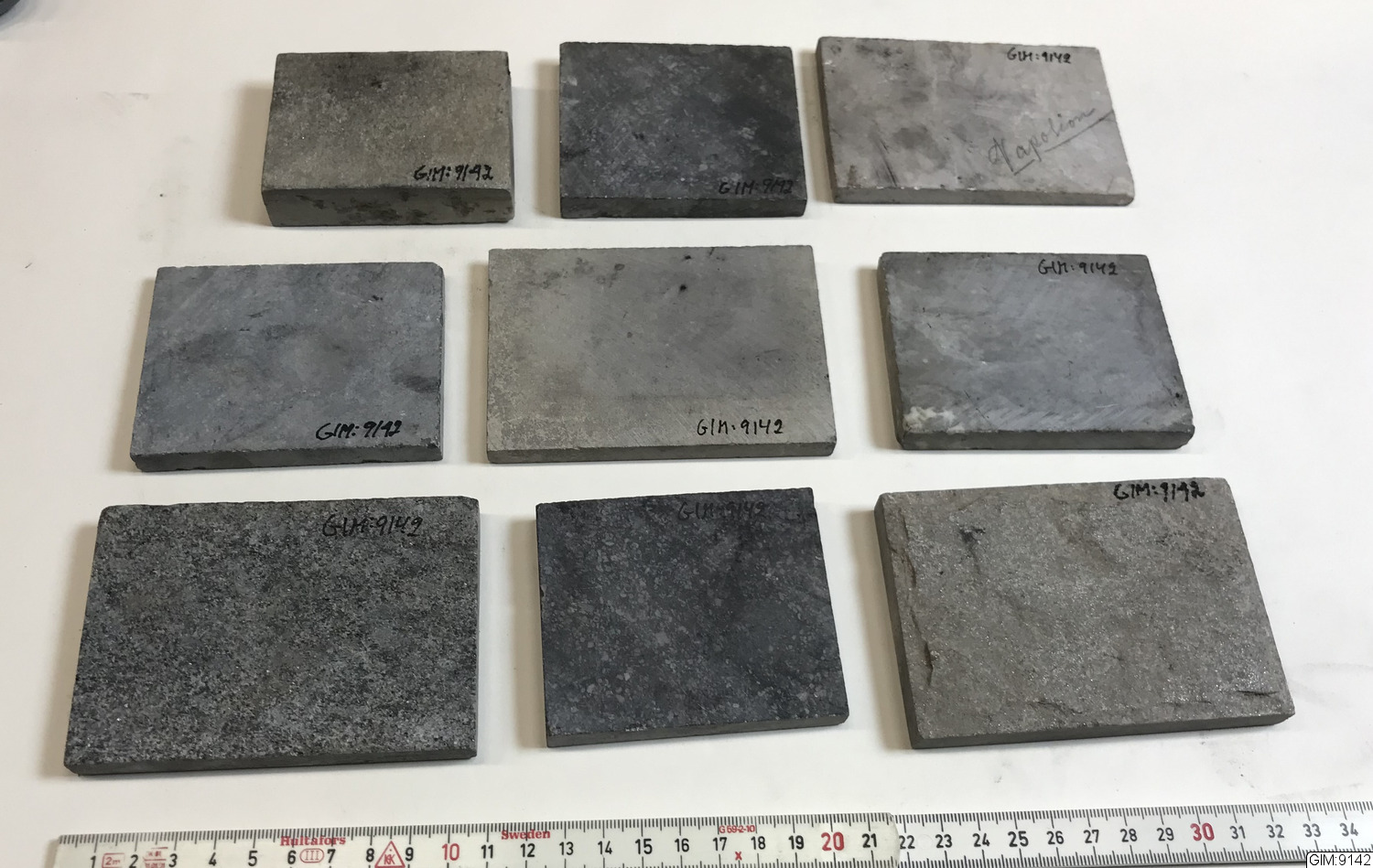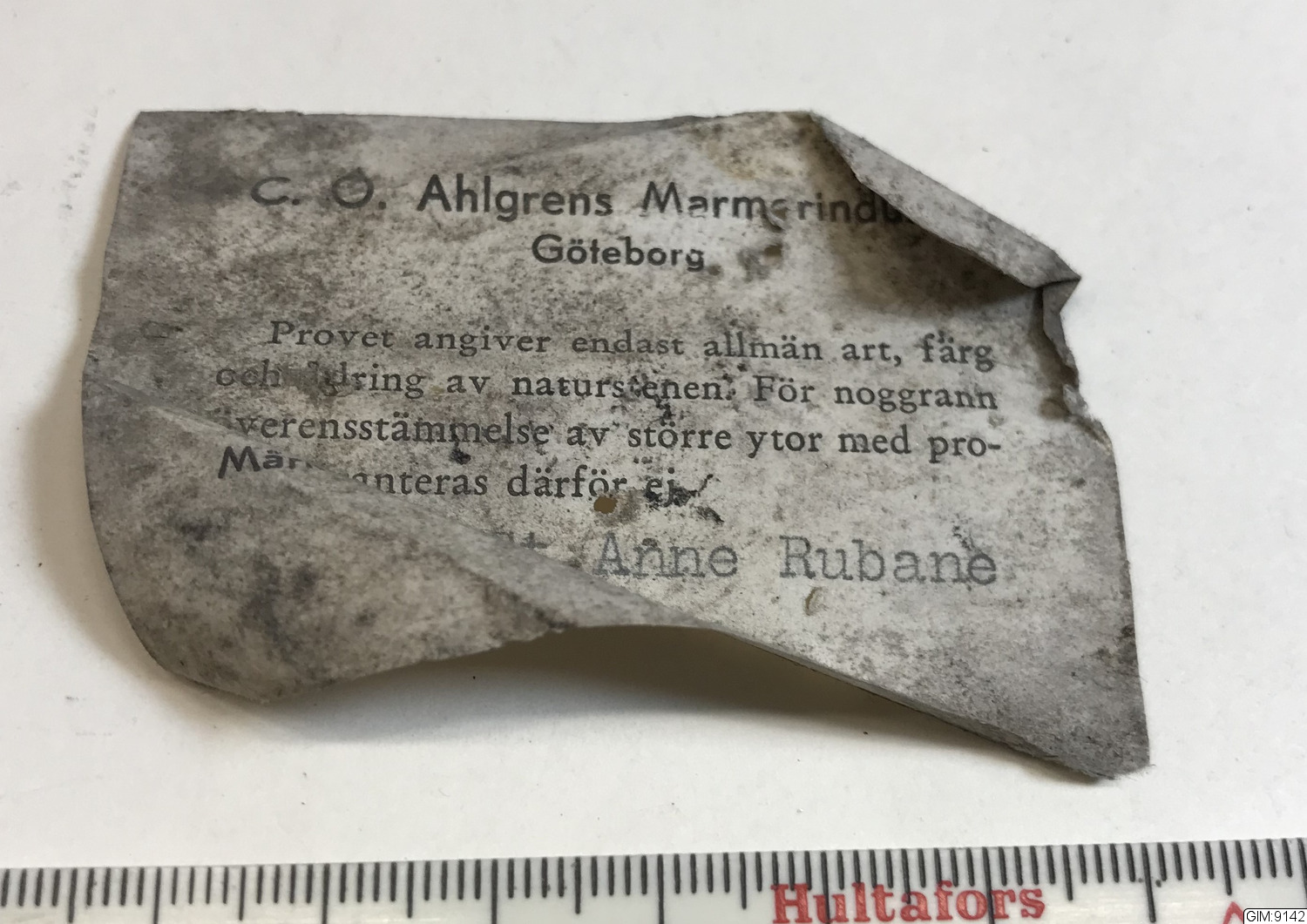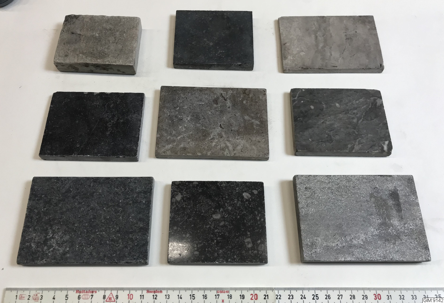 55 st stenprover från olika stenhuggerier i Sverige och en plats i Portugal. AB Helgo Lanns Marmorstenhuggeri, Borghamn, Thorsberg, m fl. Flera med fastsatta pappersetiketter.