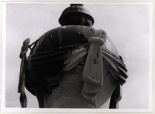 Kristine kyrka: Aschebergska gravkoret. Reparation av krönet, 1969. Den krönande urnan, före nedtagningen.