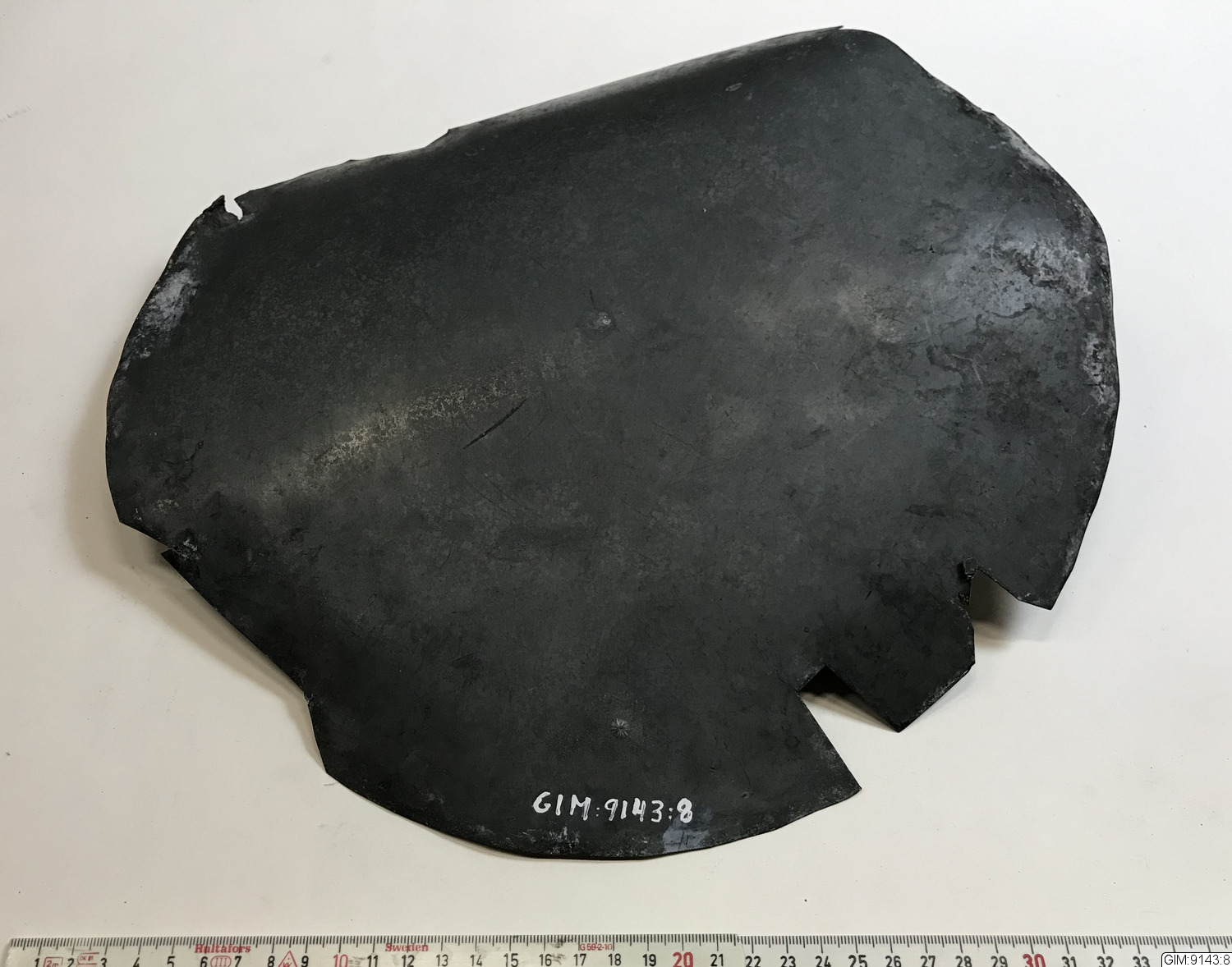 Del - skärmskydd - till två UV-ljuslampor med kolstavar- c:a en meter långa. Har förmodligen hängt från taket. Finsenlamporna användes som medicinsk åtgärd mot hudtuberkulos. Patienterna strålades mot ansatta delar på kroppen.