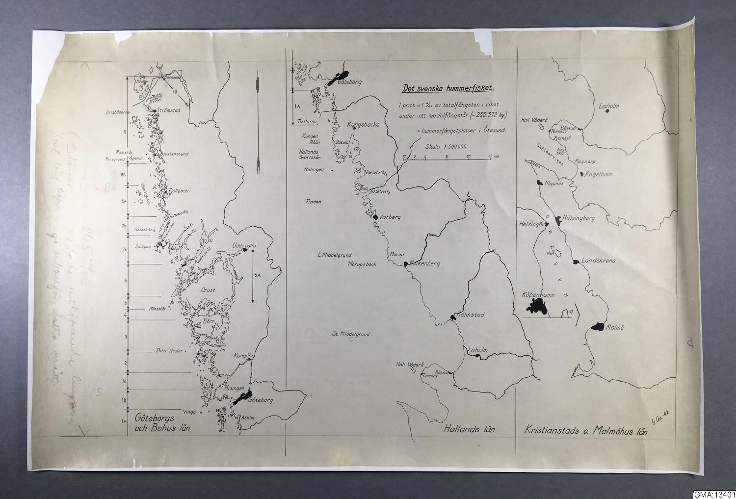Handritade karta 'Den svenska hummerfisket'