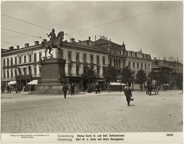 Verlag der neuen Photogr. Gesellschaft A.-G. Steglitz-Berlin Gotenburg. Statue Karls IX. und östl. Hafenstrasse Göteborg. Carl IX. s. staty och östra Hamngatan 16056