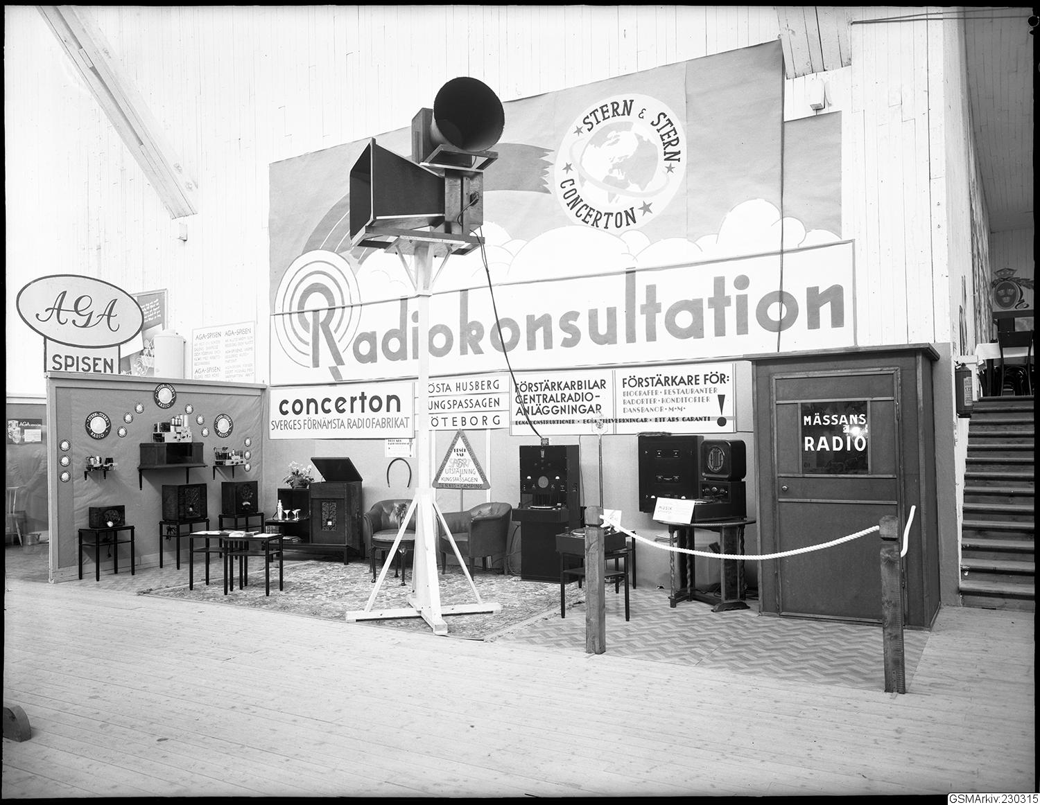 Monter på Svenska Mässan, utställare Radiokonsultation A. B. Kungspassagen Göteborg, samt Mässans Radio.