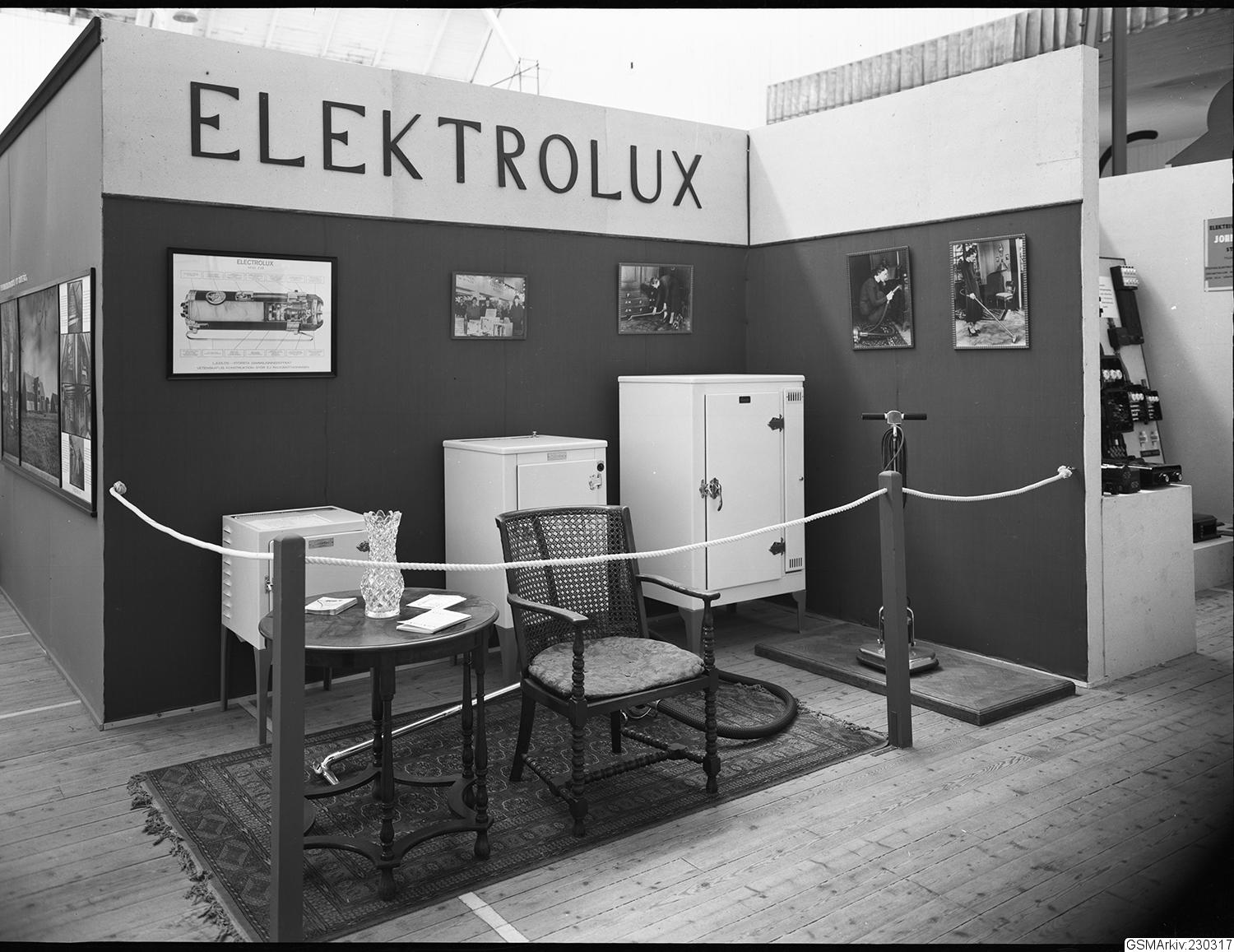 Monter på Svenska Mässan, utställare Electrolux, kylskåp och dammsugare