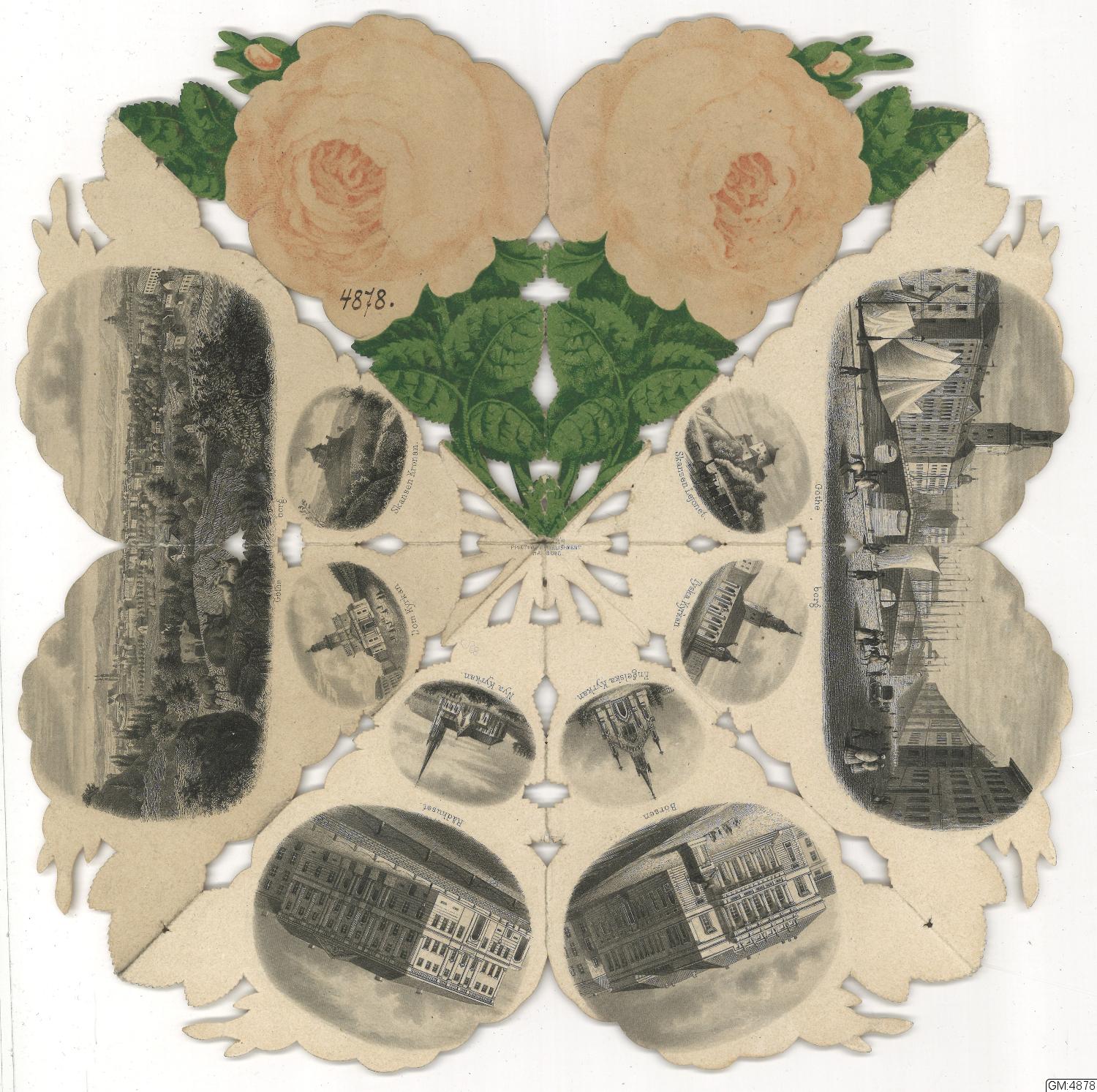 Törnrosen innehar ett antal bilder som tillsammans bildar en törnros, bilderna visar stadsvyer, kyrkor, natur, staty (Gustav Adolf) m.m. På sidan med 2 rosor finns 10 detaljbilder, på den andra sidan finns 16 detaljbilder.