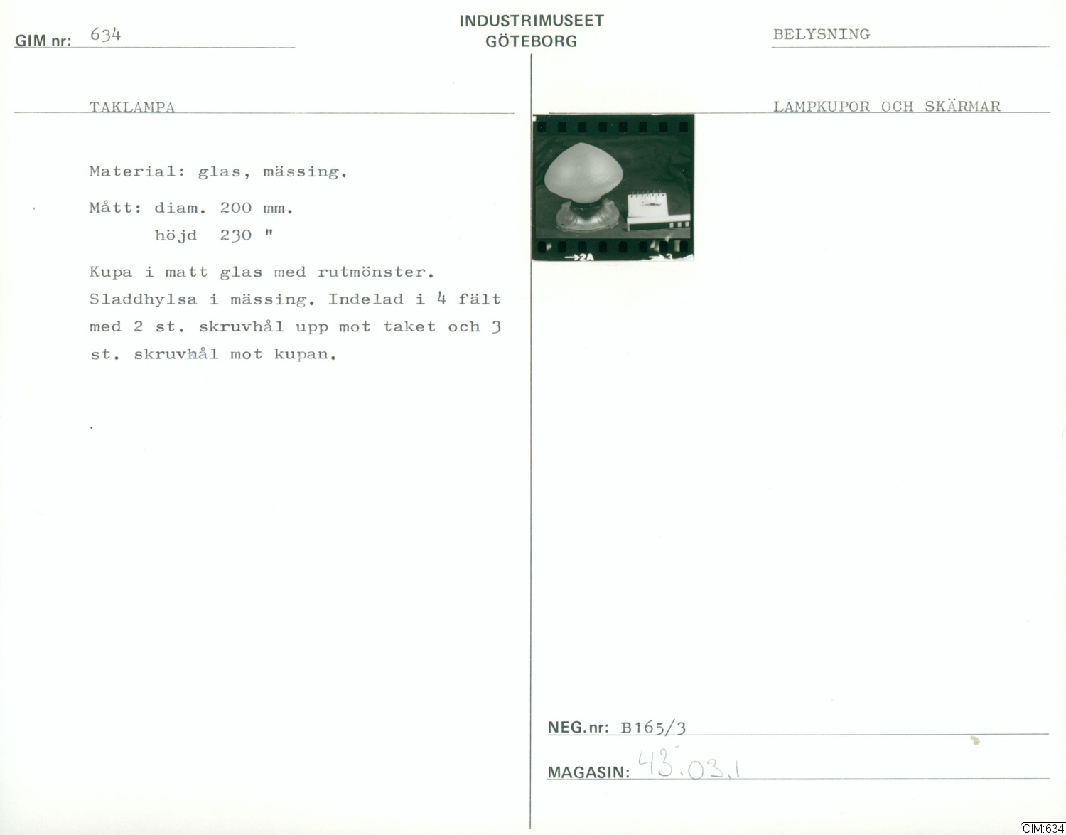 GIM katalogkort Belysning 1 :: kapsel, katalogkort