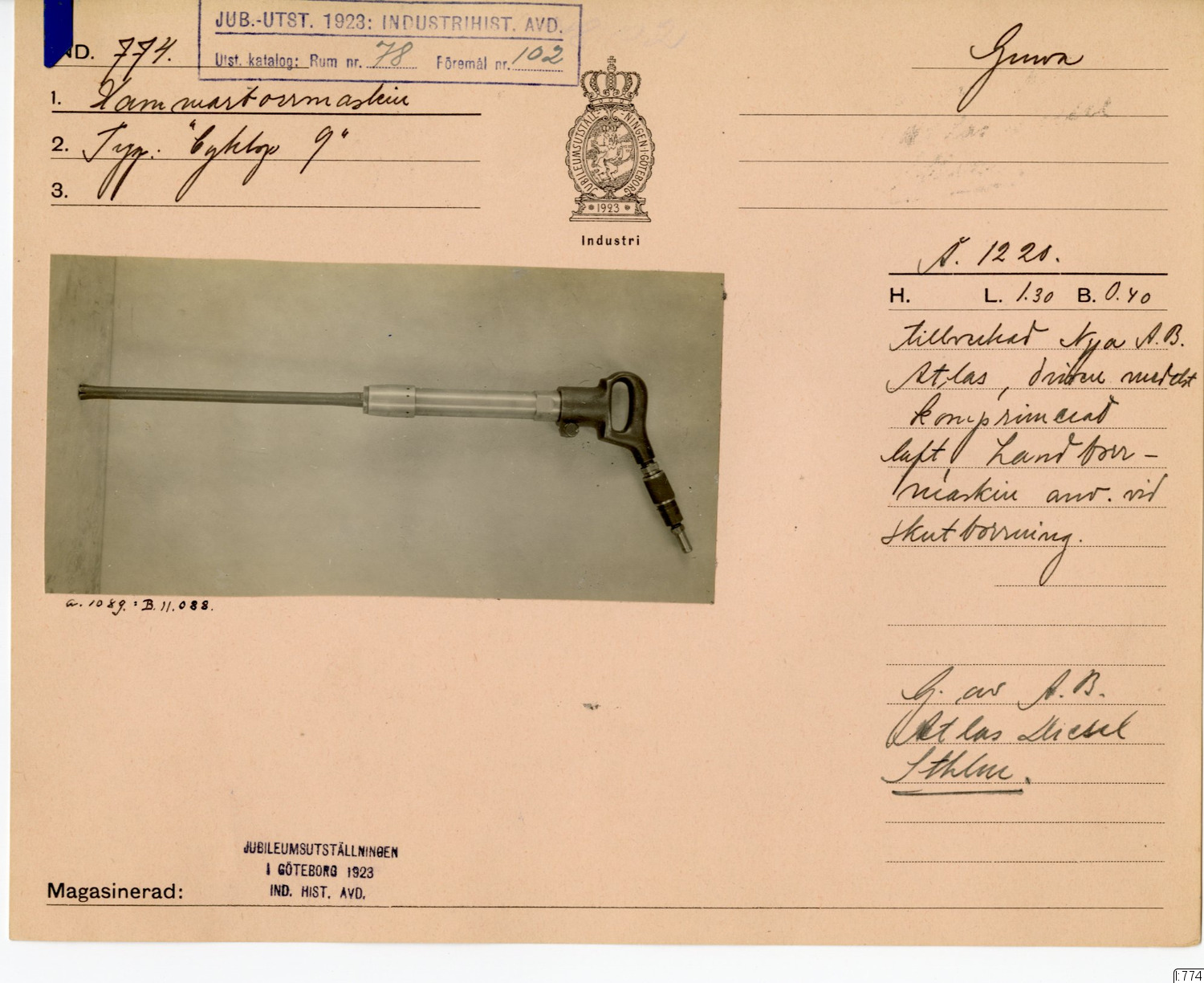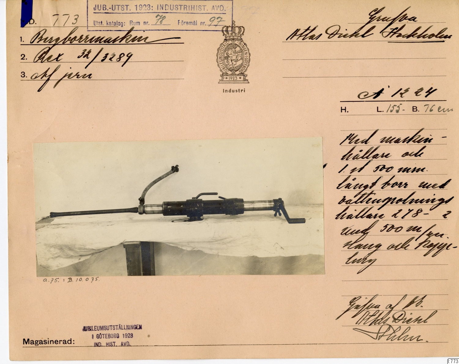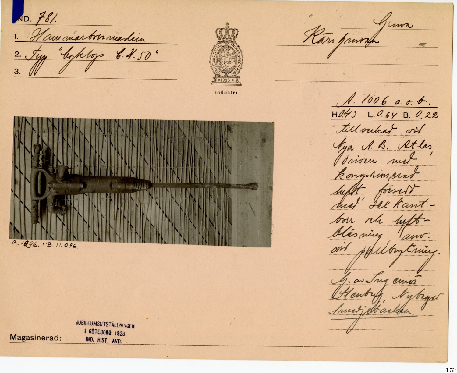 GIM katalogkort Industri 3 : Järnindustri III: Gruvhantering 3, maskinborrning: hammarborrmaskiner