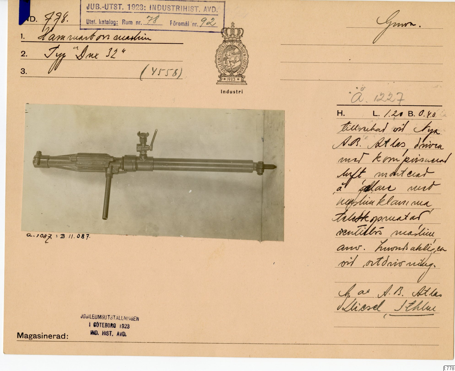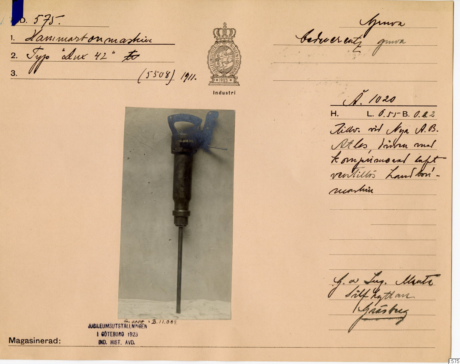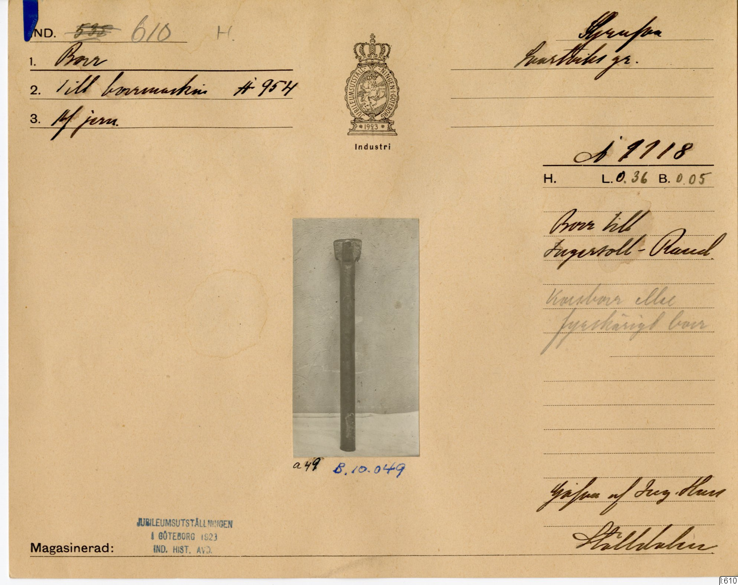 GIM katalogkort Industri 3 : Järnindustri III: Gruvhantering 3, maskinborrning: hammarborrmaskiner