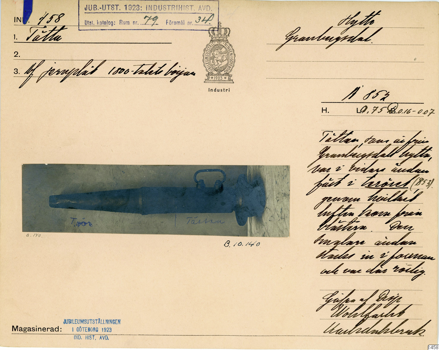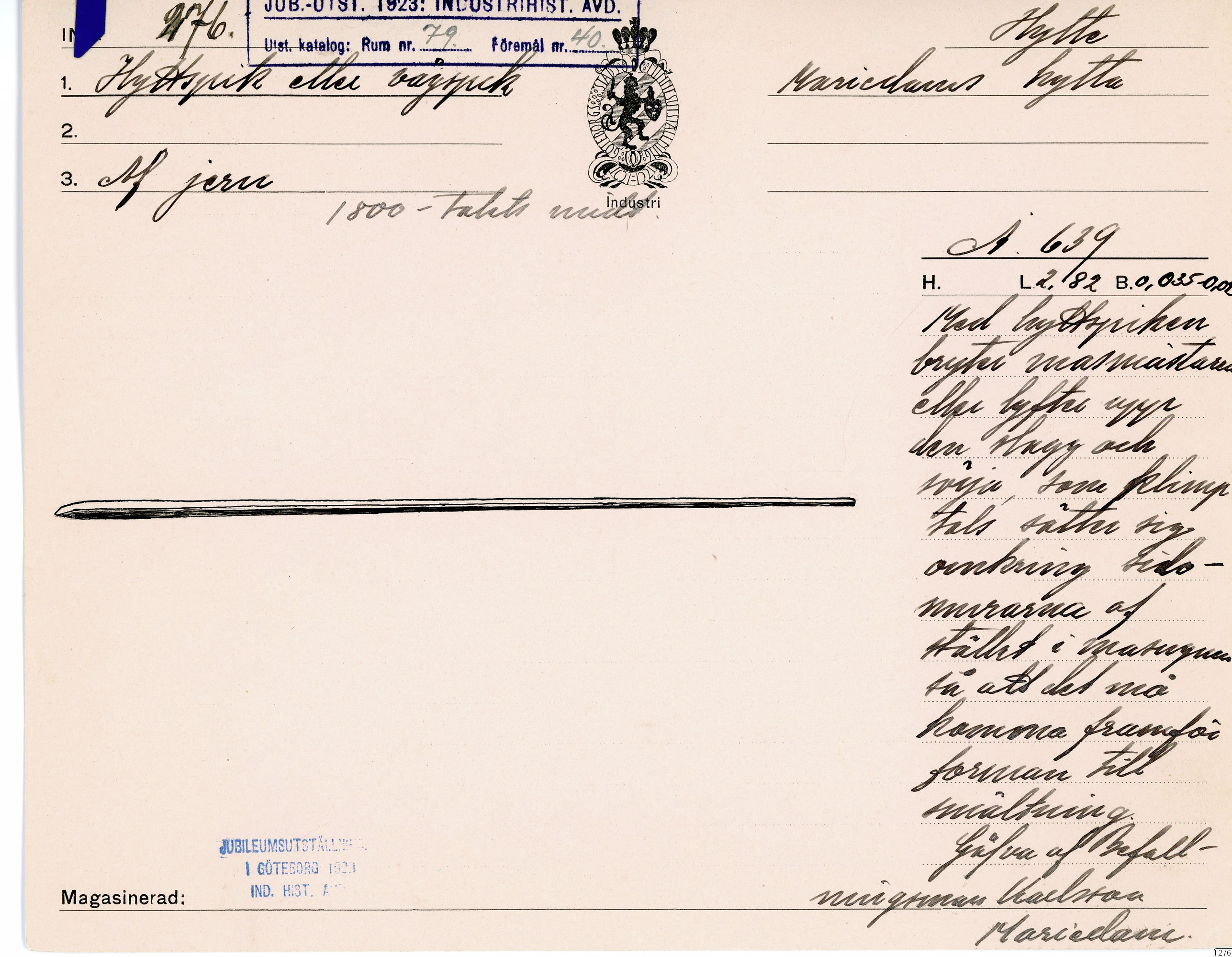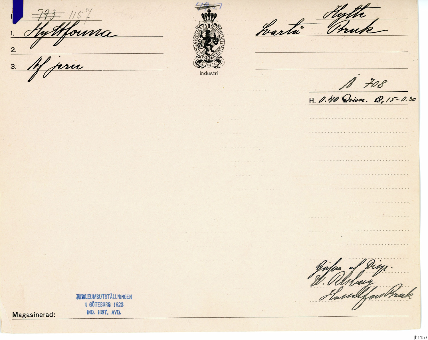 GIM katalogkort Industri 6 : Järnindustri VI : Gruvhantering 6 : Hyttdrift