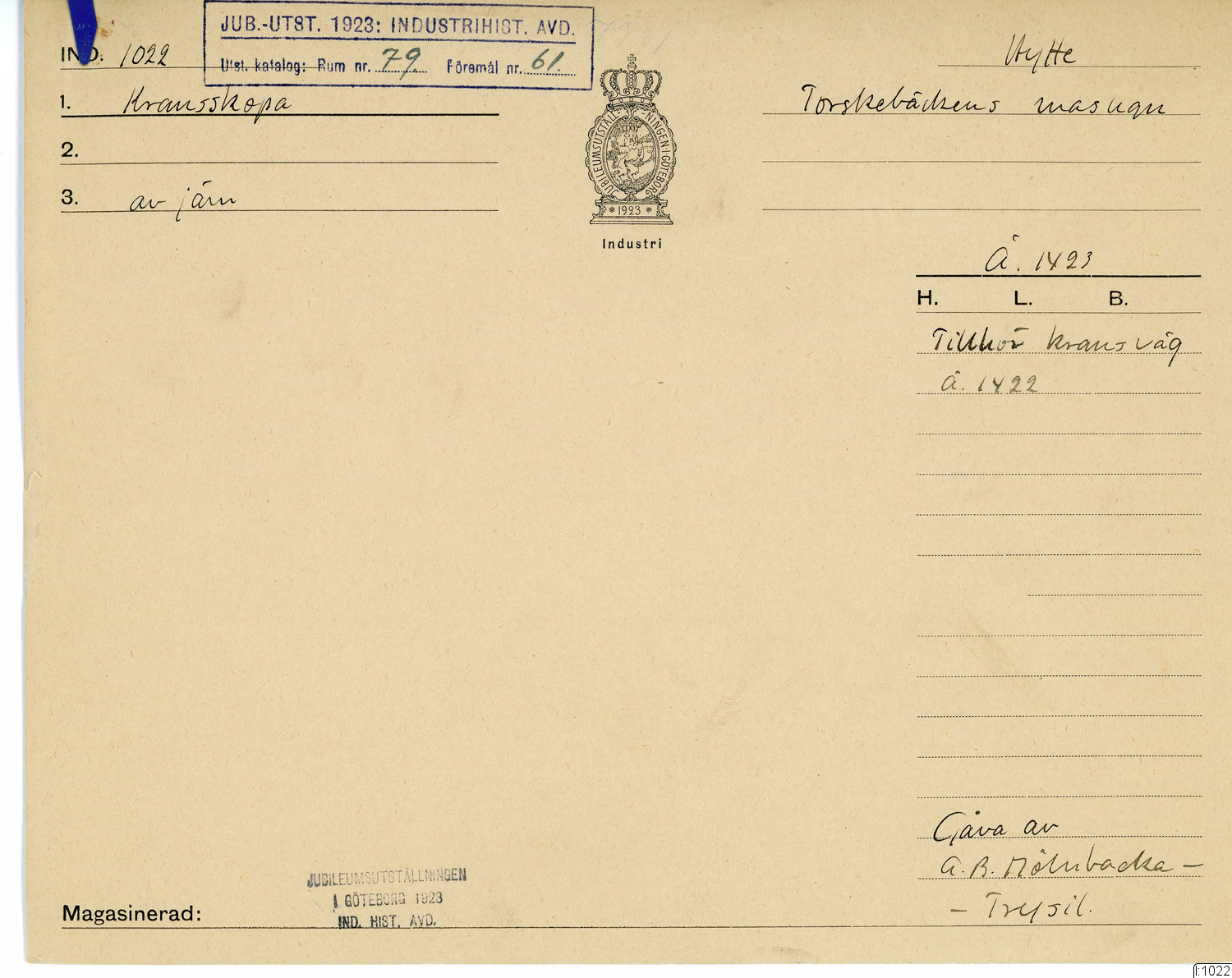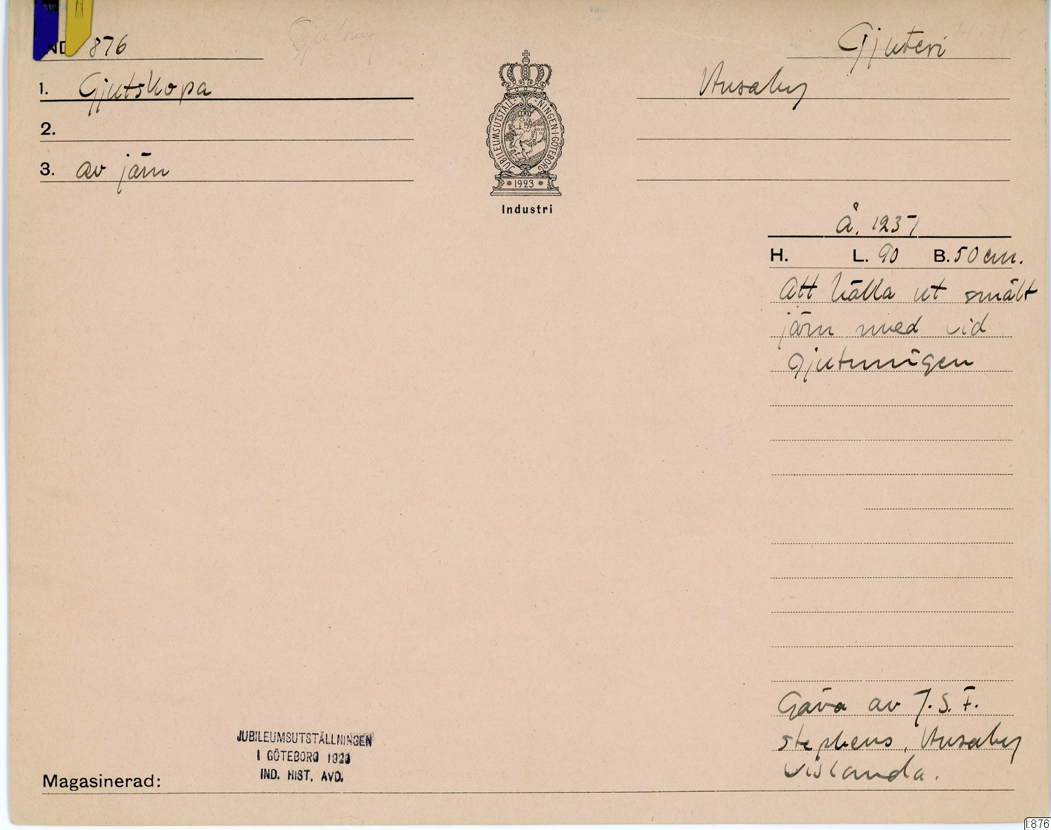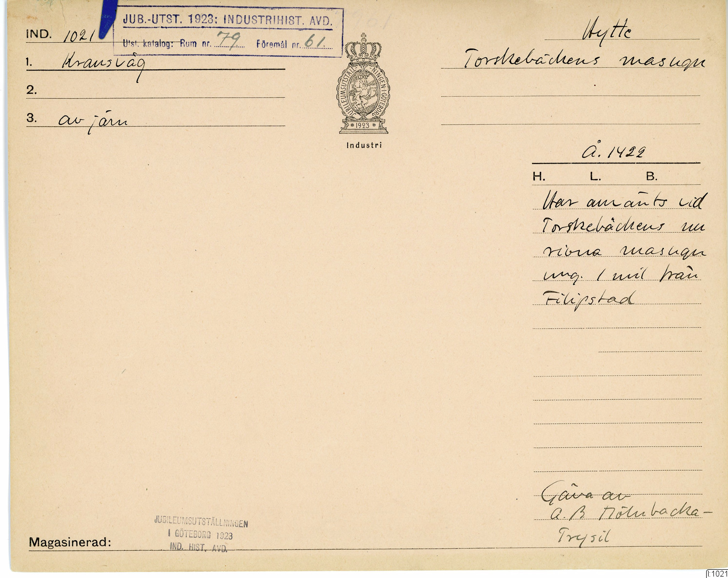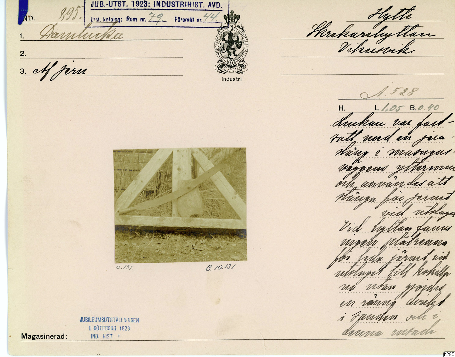 GIM katalogkort Industri 6 : Järnindustri VI : Gruvhantering 6 : Hyttdrift