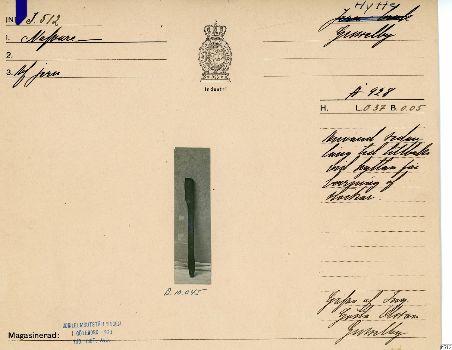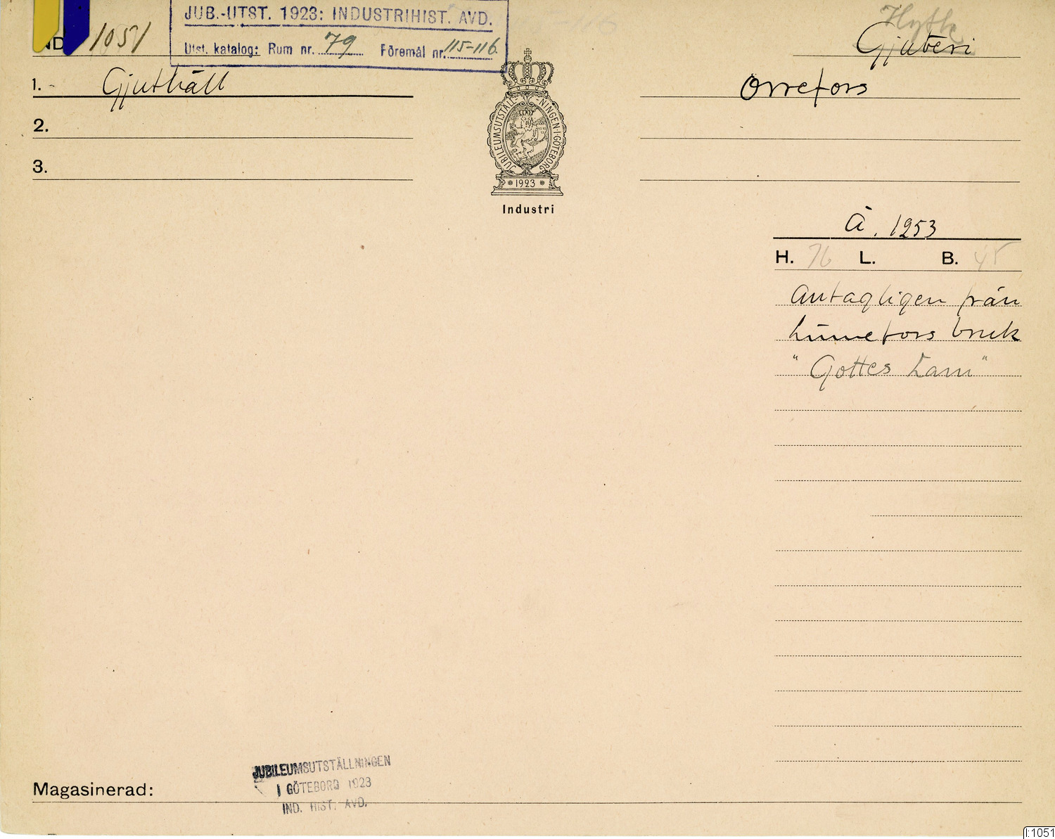 GIM katalogkort Industri 8: Järnindustri VIII: Gruvhantering 8