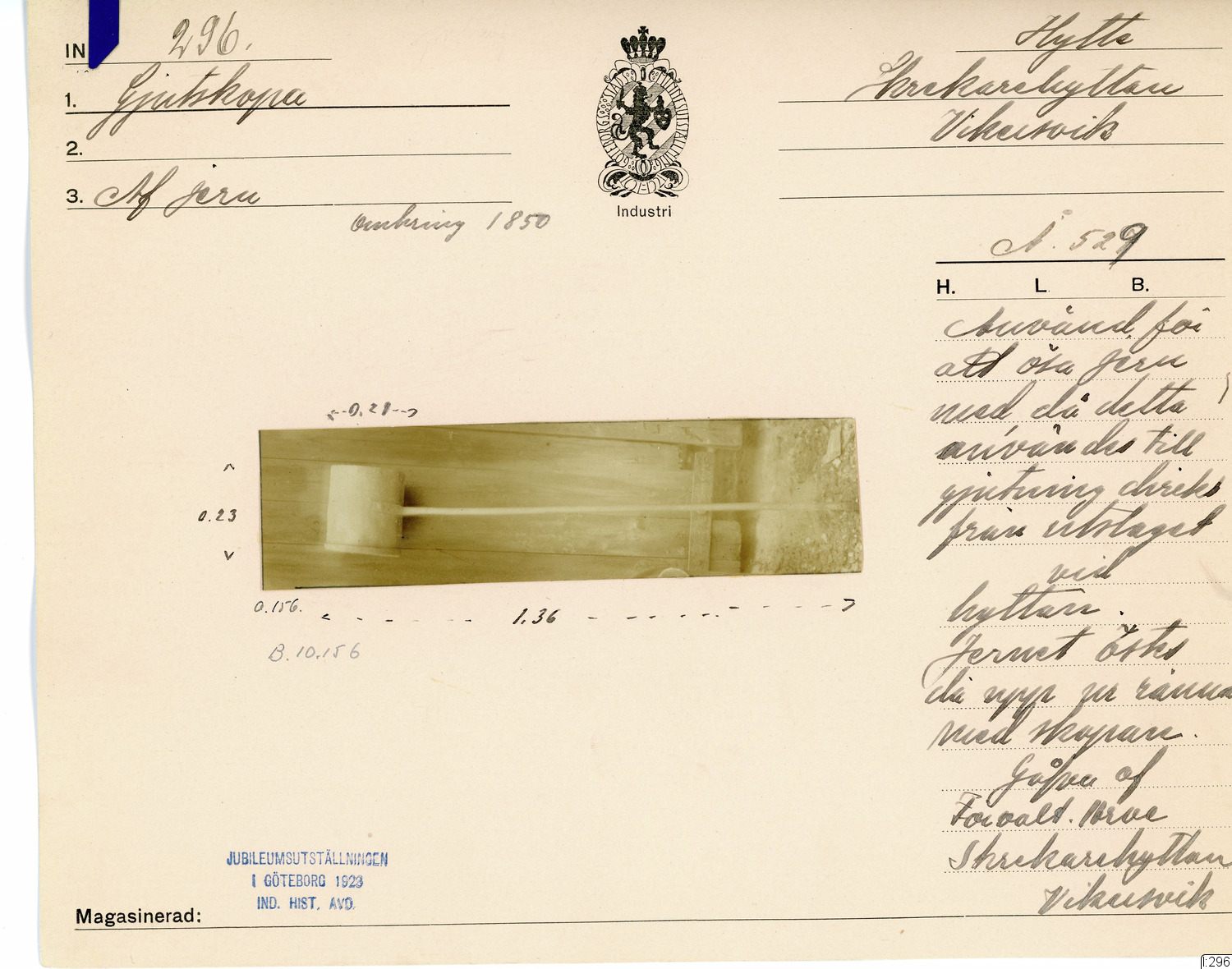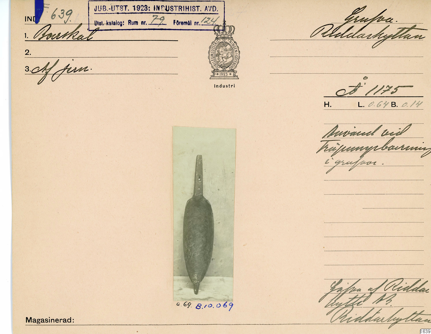 GIM katalogkort Industri 8: Järnindustri VIII : Gruvhantering 8 : Gjutning, borrning av pumpstockar