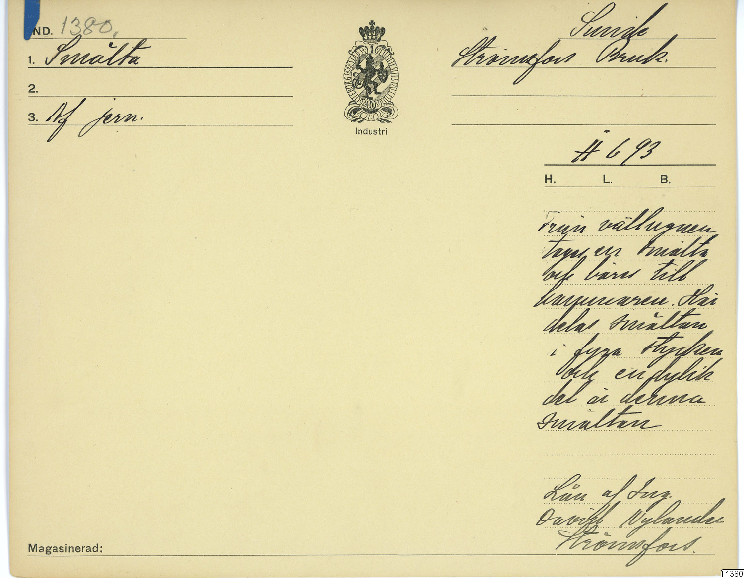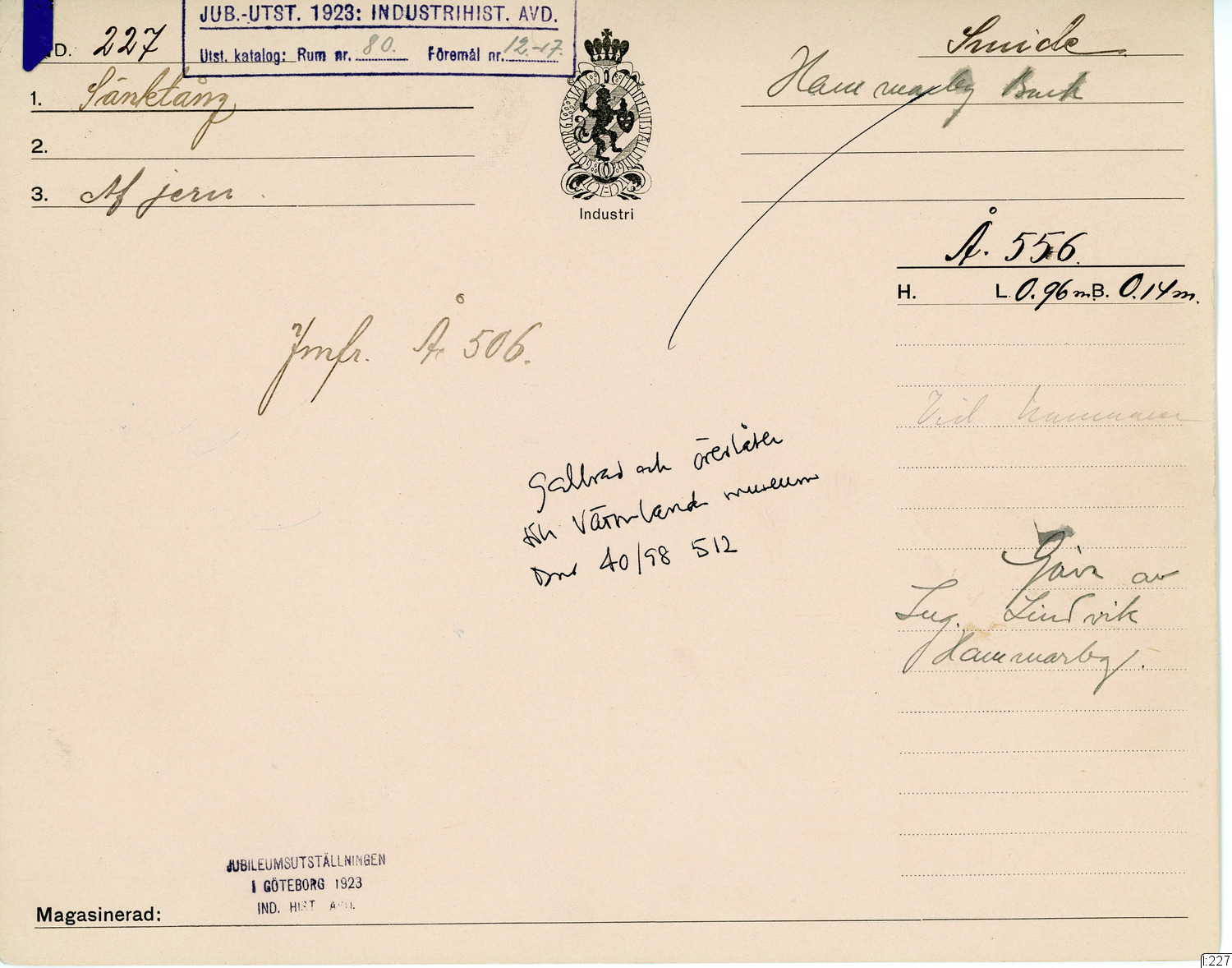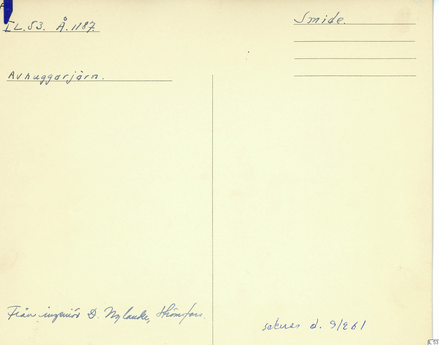 GIM katalogkort Industri 9 : Järnindustri IX : Smide 1: Smältsmide